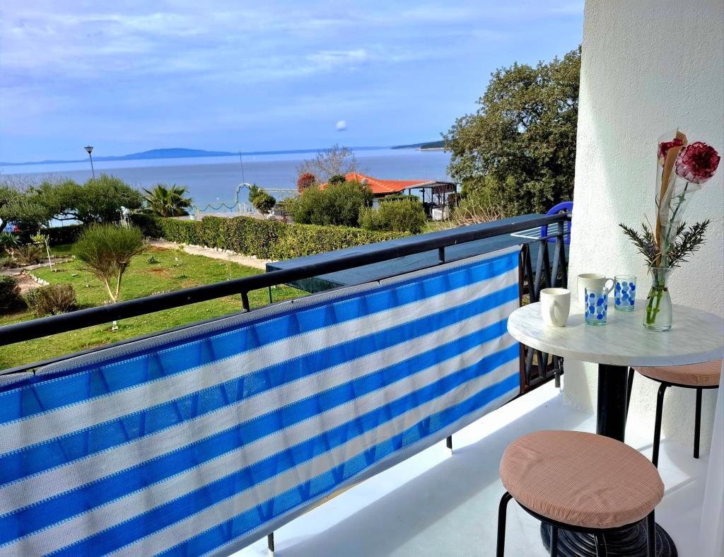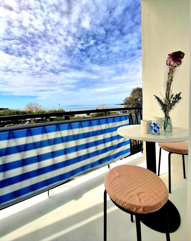 "Iščete počitnice, kot so bile nekoč - z zvokom valov namesto hrupa televizorja? Naša namestitev v prvi vrsti do morja v Banjolu vam ponuja prav to: vrnitev k naravi in resničen mir. Nahajamo se neposredno na promenadi Lungo Mare, 20 minut lahkega sprehoda od mesta Rab. Namesto klimatske naprave vam ponujamo svežino morskega zraka, namesto zaslona pa najlepši razgled na zaliv z vašega zasebnega balkona. Kaj ponujamo? Popolna lokacija: Prva vrsta do morja, tik ob sprehajalni poti ali jutranjem teku. Uživajte v preprostosti, vonju soli in bližini starega mestnega jedra." Počitnice kot nekoč: Brez televizorja in umetnega hlajenja: talni ventilator in morski zrak. A še vedno dobra internetna povezava; brezplačen WIFI. Skupni dobro opremljen kotiček za samostojno pripravo zajtrka: hladilnik, aparat za kavo, grelnik vode, opekač kruha, mikrovalovna pečica, kozarci, posoda in jedilni pribor.