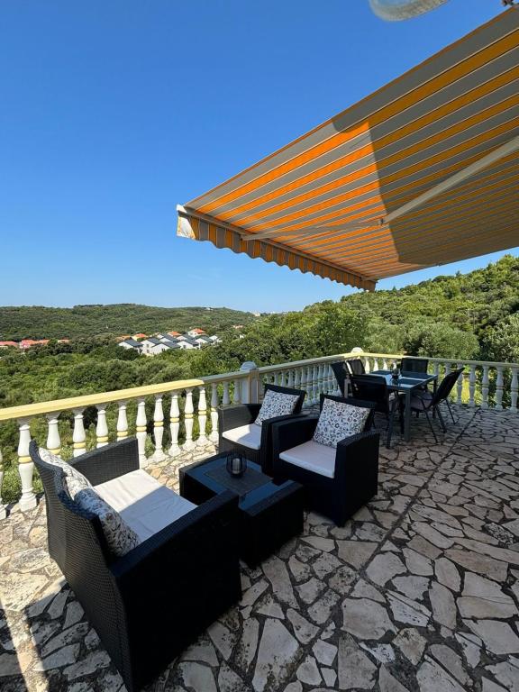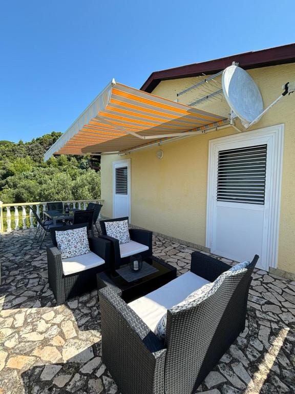 Oddam 3-sobna stanovanja velikosti 55 m2 v 1. nadstropju hiše in pritličju hiše. Apartmaji so popolnoma opremljeni in vključujejo: dnevno sobo in jedilnico s TV s satelitskim sprejemnikom in klimatsko napravo. Dve spalnici. Vsaka soba z 1 zakonsko posteljo (160 cm, dolžina 200 cm), garderobno omaro in izhodom na teraso. Kuhinja (hladilnik, 4 kuhalne plošče, pomivalni stroj, kuhalnik vode, el. aparat za kavo, toaster, mikrovalovna pečica) Kopalnica z WC, tušem in umivalnikom. Velika terasa 35m2 s pogledom na morje, pohištvom za počitek in jedilno mizo. Hišni ljubljenčki niso dovoljeni. Za skupno uporabo: parcela 400 m2 (ograjena). Terasa, vrtna garnitura, žar. V hiši: internetni priključek, pralni stroj (za skupno uporabo, z doplačilom). Parkirišče ob hiši na parceli. Apartma se nahaja v slepi ulici, 800 m od centra Raba, 5 km od centra Kampora, 15 km od centra Loparja, 800 m od morja, 800 m od plaže, 100 m od plaže. trgovina.