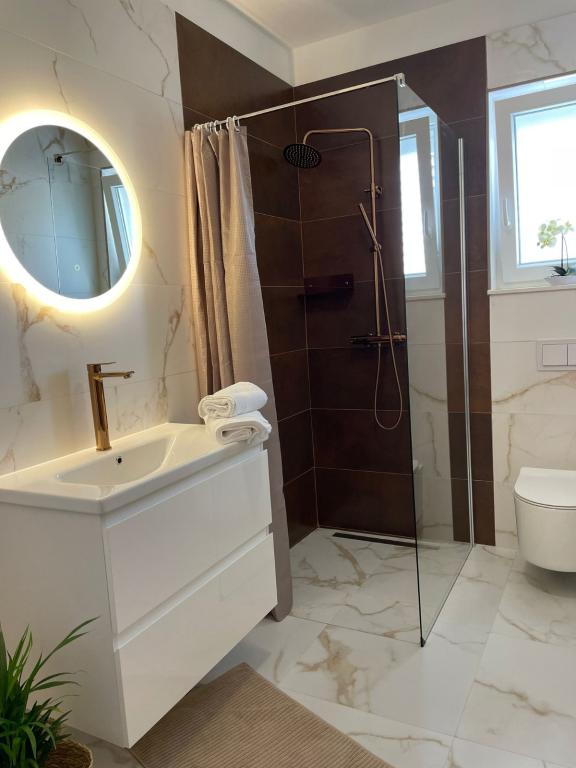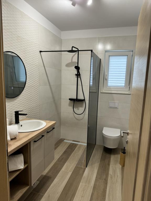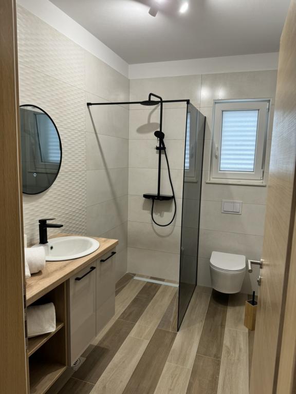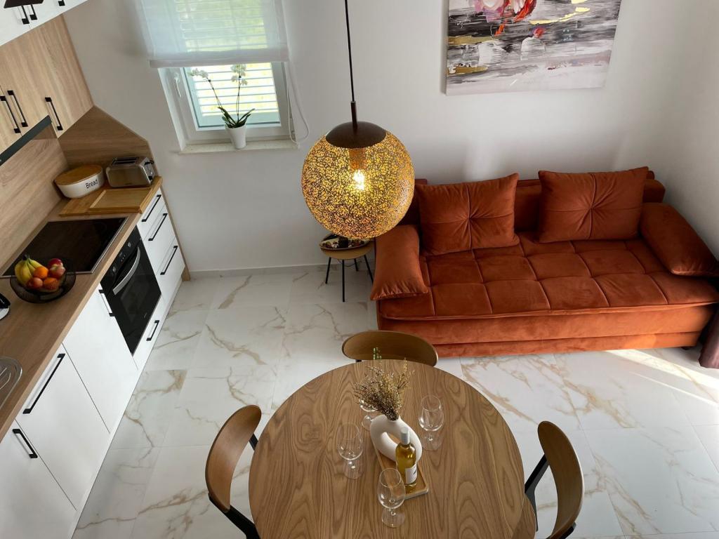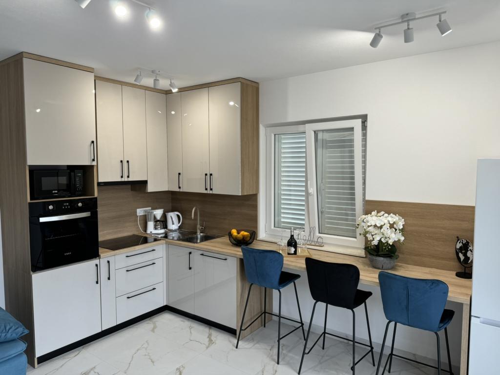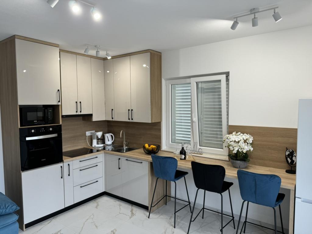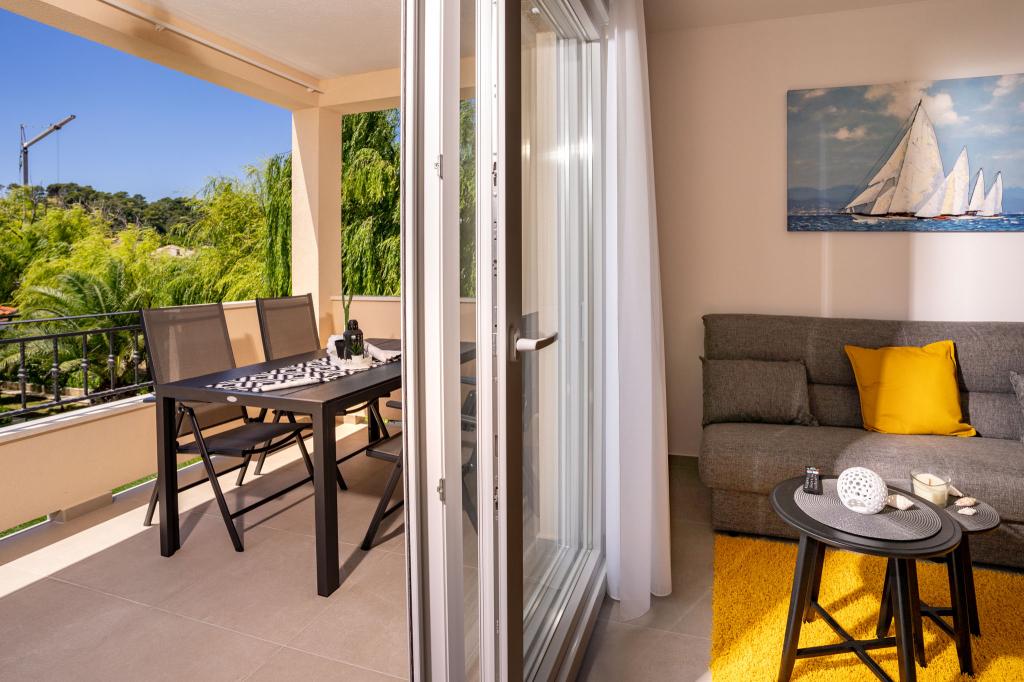 Popolnoma in moderno opremljeni apartmaji v mirnem delu otoka Rab Apartmaji se nahajajo 5 minut hoje od plaže Grat in 10 minut hoje od starega centra Grata, supermarketi so tudi 200 metrov od objekta. Pred stavbo je veliko brezplačno parkirišče in otroško igrišče.