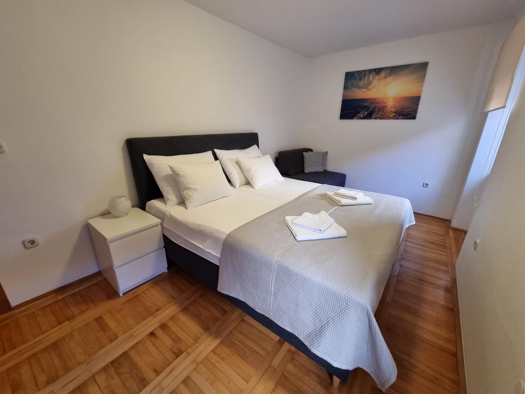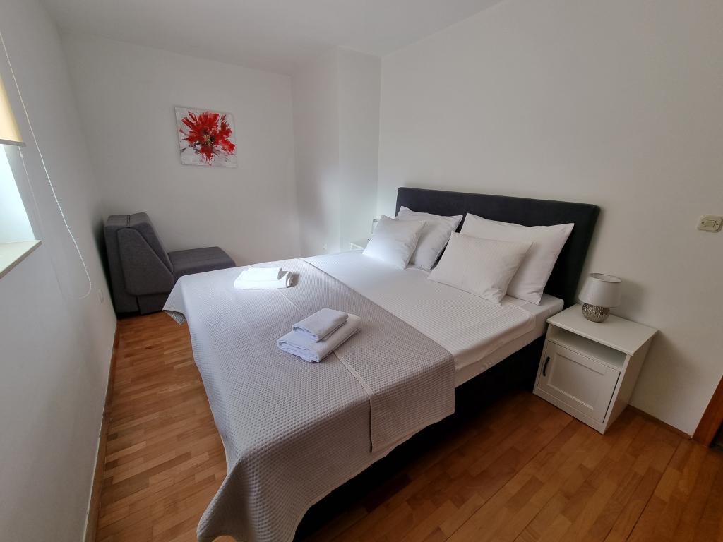 Doživite nepozabne poletne počitnice v srcu mesta Rab na otoku Rabu v naših udobnih apartmajih, ki se nahajajo v mirnem okolju starega mestnega obzidja. Navdušenja vam ne bo manjkalo, ko boste občudovali čudovit panoramski razgled s strešne terase večjega apartmaja, kjer boste uživali v neverjetnih pogledih na štiri znamenite mestne zvonike. Ne zamudite priložnosti, da uživate v bližini mestne plaže, le 2 minuti hoje od apartmaja, ali raziščite ulice in trgovine na glavni ulici, le 30 metrov od nepremičnine. In če želite poskusiti lokalno hrano, je restavracija le 10 metrov stran od apartmaja! Z brezplačnim parkiranjem za vse goste na mestnem parkirišču, ki se nahaja ob obali le nekaj minut hoje od apartmaja, vam ne bo treba skrbeti za nič. Rezervirajte zdaj in doživite nepozabne poletne počitnice v srcu mesta Rab na otoku Rab!