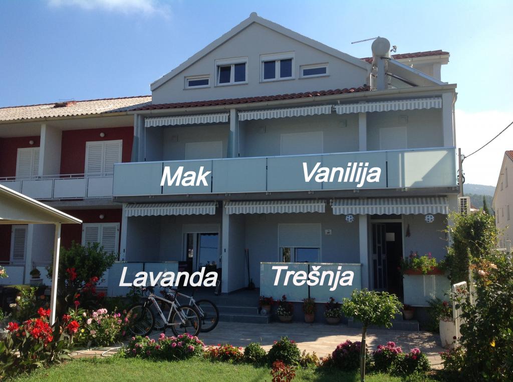 Apartmaji Mak, Vanilija, Lavanda in Trešnja se nahajajo v popolnoma prenovljeni moderni hiši. Opremljen je z novim pohištvom. Nepremičnina se nahaja v prvi vrsti do morja. Vsak od apartmajev ima pogled na morje z lastne terase. Predel Palit v mestu Rab, kjer se nahaja objekt, je miren in v neposredni bližini mestne plaže Škver. Do nje pridete v 10 minutah po mestni promenadi ali po poteh skozi mestni park. do starega mestnega jedra, obenem pa lahko peš pridete tudi do novega dela mesta. Iz Škverja se je mogoče z ladjo odpraviti na bližnji polotok Frkanj, ki ima čudovite plaže.
