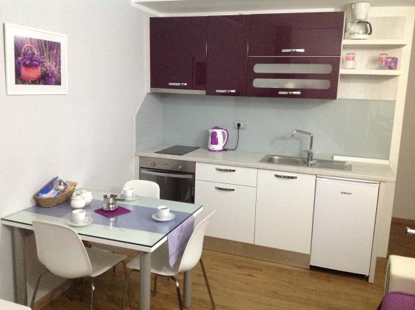 Preberite več Namestitvene enotePo uspešno opravljeni rezervaciji se plača akontacija po dogovoru, preostanek zneska pa ob prihodu. Čas prihoda je po 14. uri, čas odhoda pa do 10. ure. Za otroke od 2 do 12 let znaša 12 € na dan, za otroke od 13 do 18 let 15 € na dan, za starejše od 18 let pa 20 € na dan. Otroci do 2 let - bivanje je brezplačno, če spijo pri starših. Cena najema otroške posteljice je 10 € na dan. Majhni hišni ljubljenčki do 5 kg doplačajo 10 € na dan. Večjih hišnih ljubljenčkov ne sprejemamo. Čiščenje apartmaja: 40 €, za apartma Vanilija 50 € Kajenje v apartmaju ni dovoljeno, lahko pa kadite na terasi. Če je inventar poškodovan, je gost dolžan poškodbo prijaviti in jo plačati.