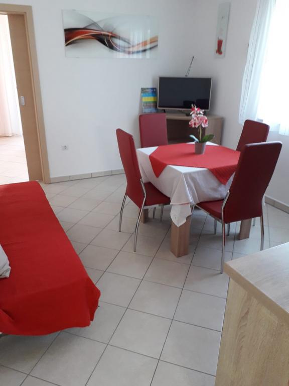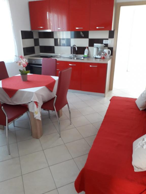 Bivali smo v pritličnem apartmaju z eno spalnico, apartma je urejen, terasa je ves dan v senci s pogledom na oljčni nasad. Prijetno stanovanje, klimatske naprave nismo potrebovali. Gostitelja sta bila prijazna in dostopna, pričakali so nas z domačo rabsko torto in ker imam rada fige, mi jih je nabrala teta. Priporočam.