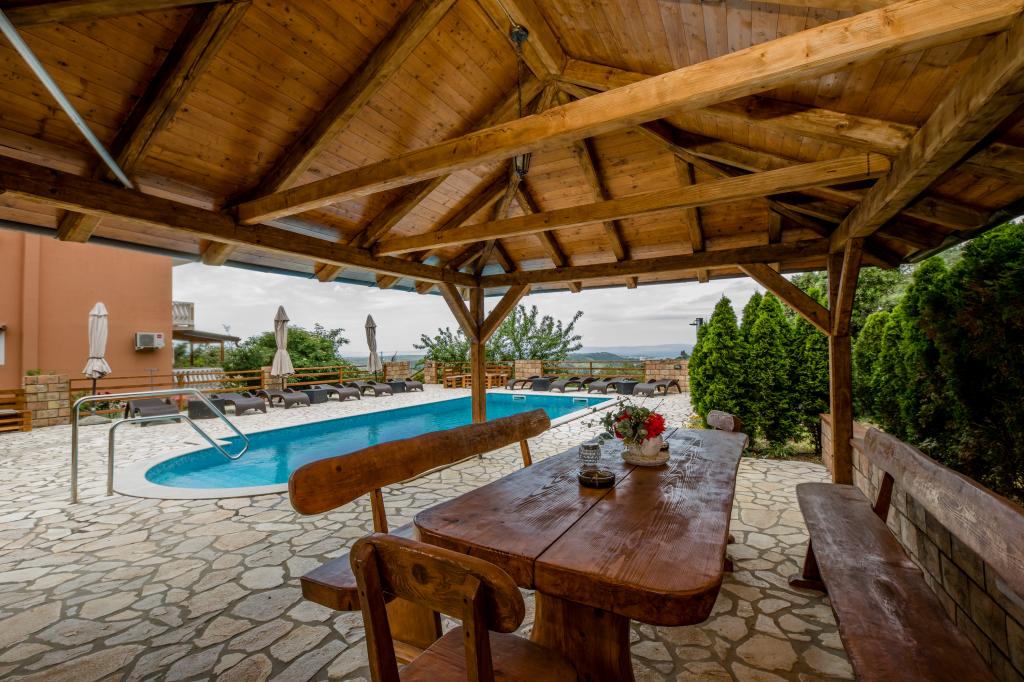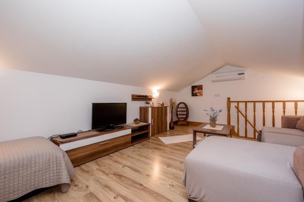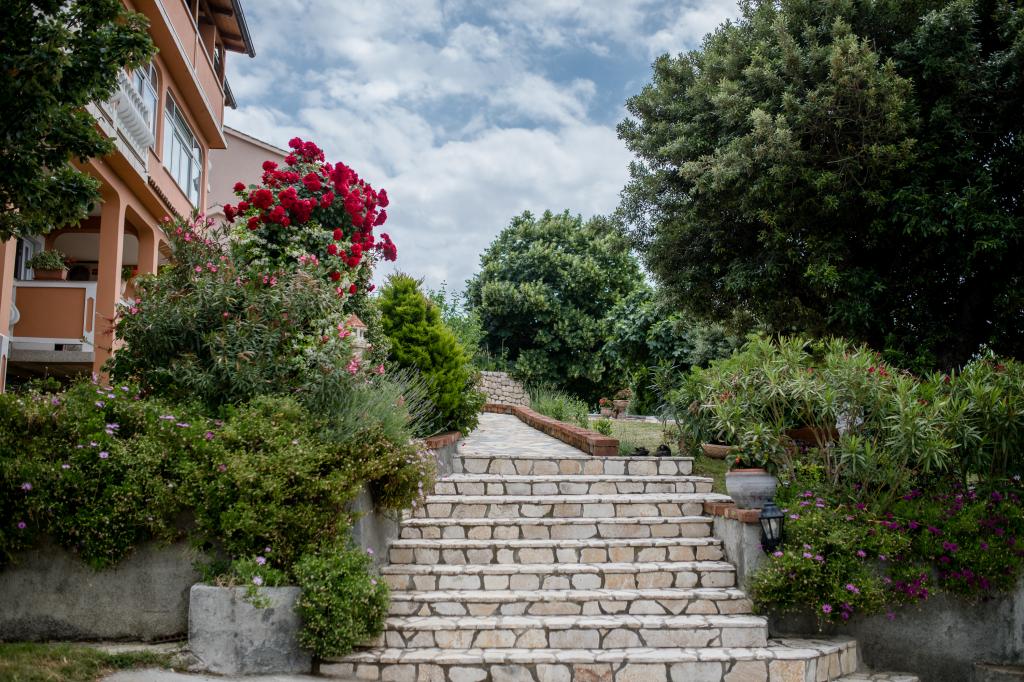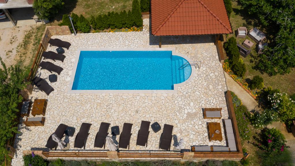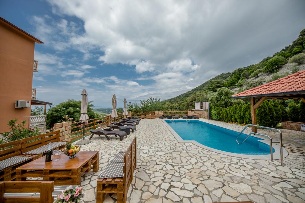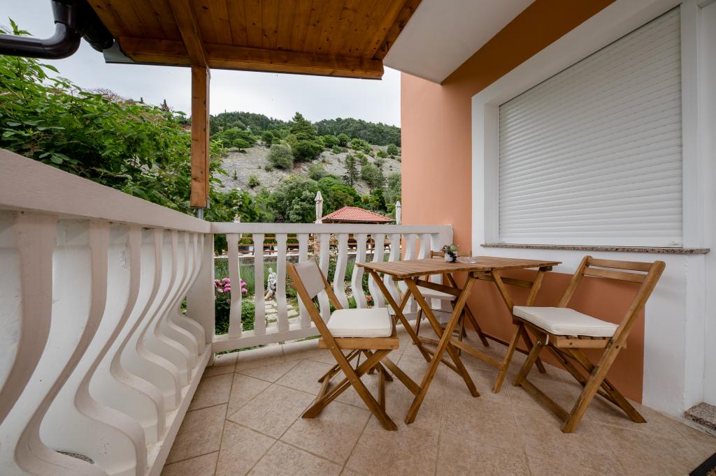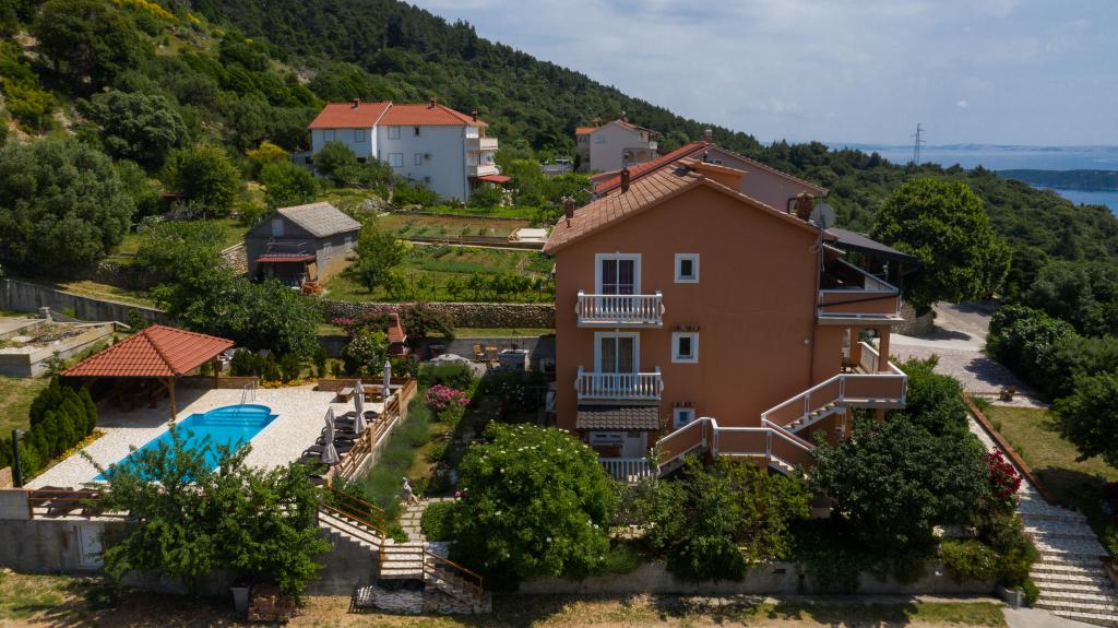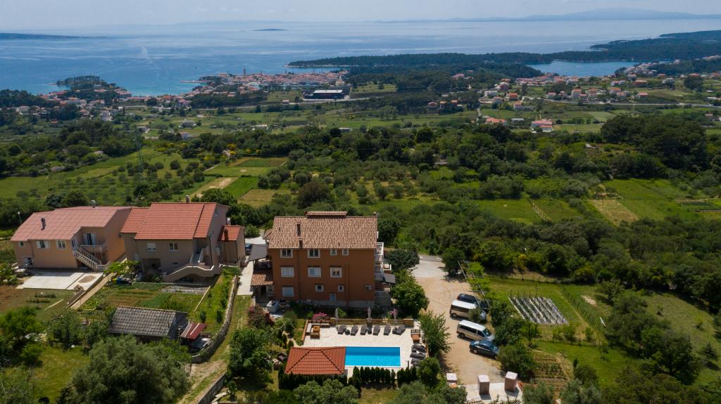 Moderno opremljeni apartmaji na 350 metrih nadmorske višine v mirni vasici Šćerba v Mundanijah na otoku Rabu. Objekt je od morja, centra in vseh ostalih pomembnih lokacij oddaljen cca 2-3 km, kar je cca 10 min vožnje z avtom. Položaj objekta ponuja lep razgled z vseh teras in balkonov na celoten otok in večji del Kvarnerskega zaliva. Mirnost in malo prometa našega mesta nudi popoln in sproščujoč dopust v zavetju narave in čudovitega poletnega sončnega vremena. Ob hiši je veliko parkirišče, za hišo pa lepo urejen bazen in ob njem prostor za sončenje.