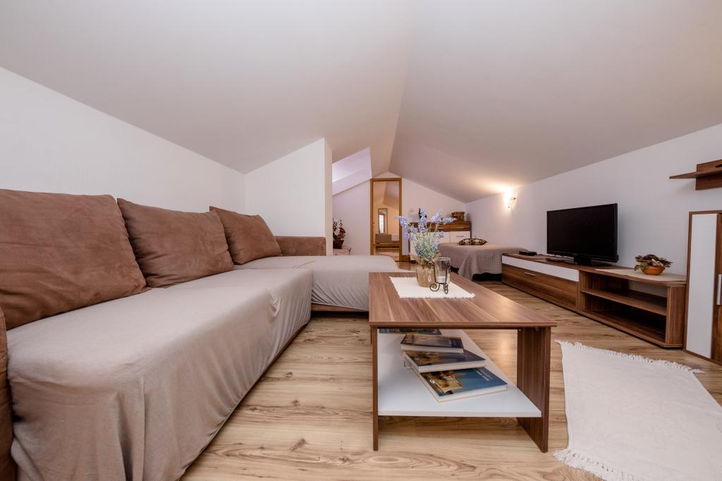 Preberite več Namestitvene enoteNajemnina se plača prvi dan po prihodu turista v namestitveno enoto. Akontacija se plača ob rezervaciji namestitvene enote. Višino akontacije se dogovorimo preko elektronske pošte. Dan prijave in dan odjave sta samo ob sobotah, minimalno število nočitev pa je 7 nočitev. Čas prihoda (prijava) je od 15.00 do 23.00 ure, čas odhoda (odjava) pa do 10.00 ure. Za vsako dodatno osebo nad normalno kapaciteto namestitvene enote je cena 15 EUR. Zaračuna se tudi strošek čiščenja v višini 70 EUR (enkrat na rezervacijo). Prisotnost hišnih ljubljenčkov v namestitvenih enotah (psi, mačke...) se doplača 15 EUR na hišnega ljubljenčka na noč.