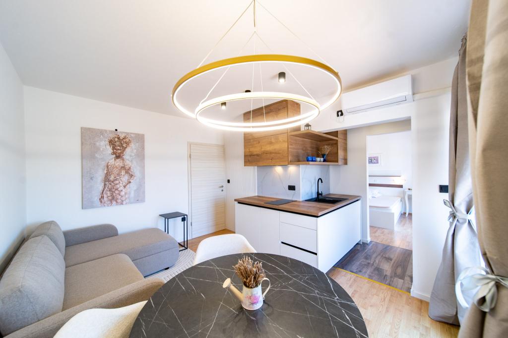 Objekt se nahaja v mirnem delu otoka Rab, mesto Palit Ker se nahajamo v prvi vrsti do morja, vse enote, ki so luksuzne in popolnoma opremljene, nudijo čudovit pogled na morje in. romantični zaliv Frkanj, kjer lahko uživate v čarobnih sončnih vzhodih in zahodih. Hiša se nahaja le 50 m od plaže in 150 m od centra Raba, do katerega lahko pridete s prijetnim sprehodom po promenadi ob morju. Restavracije se nahajajo tudi nekaj minut hoje od stavbe. Stavbo krasi tudi čudovit vrt z vrtom, kjer boste uživali v mediteranskih vonjavah ob morju.