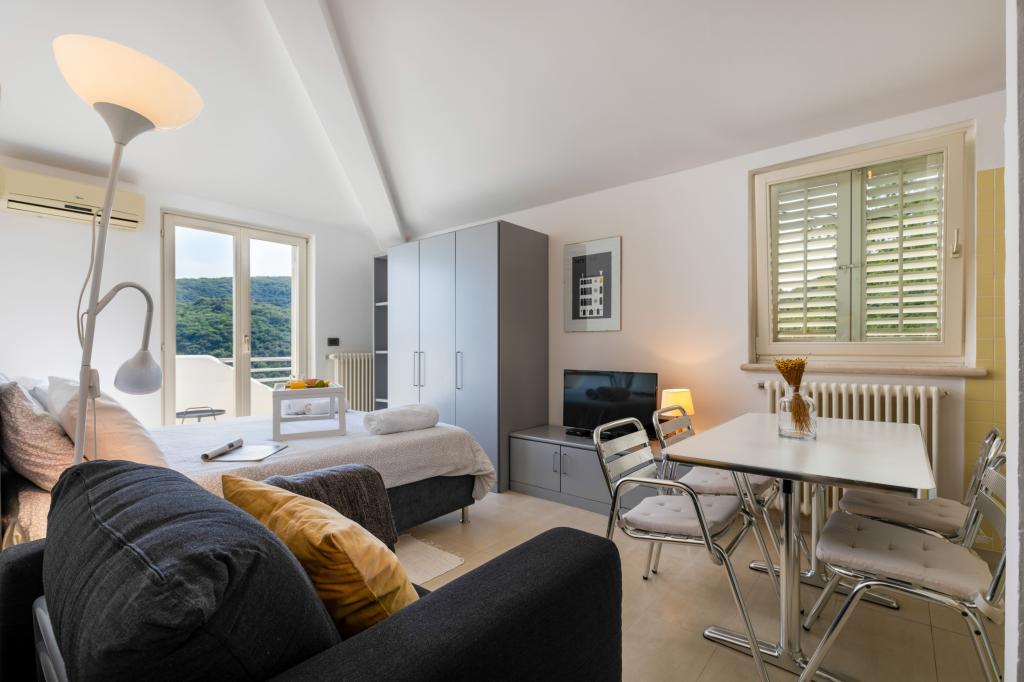 Celotna hiša in stanovanja so prenovljeni. Imela sva apartma za dva in sva bila zadovoljna, soba je bila lepa in čista. Čudovit pogled z balkona na morje in plažo. Celotno mesto Rabac leži na hribu, zato je večina apartmajev dostopna po stopnicah z morske strani. Na splošno veliko zadovoljstvo in čudovite počitnice.