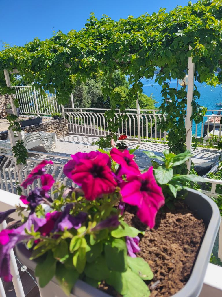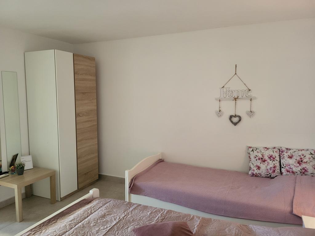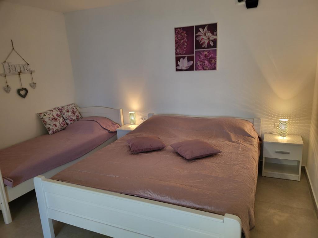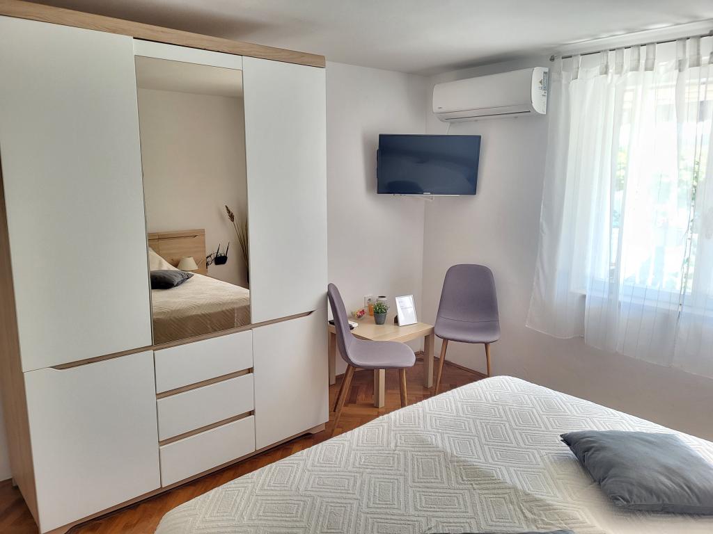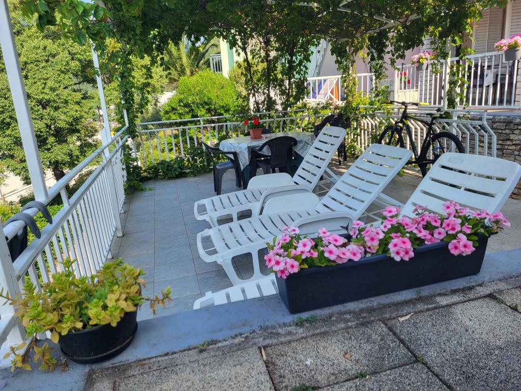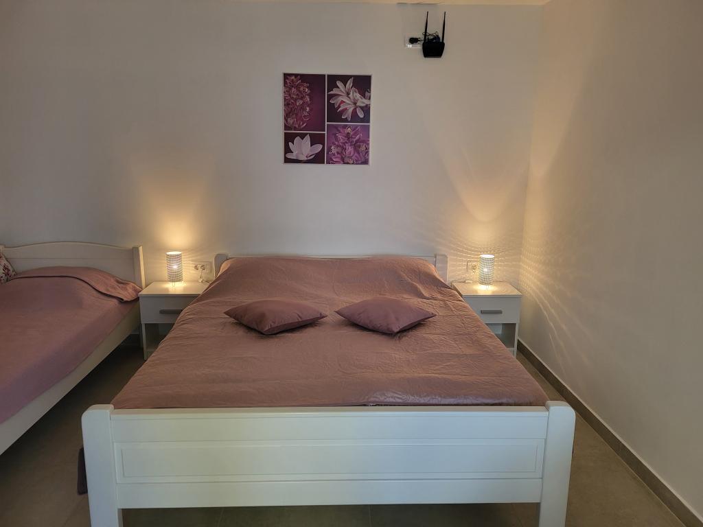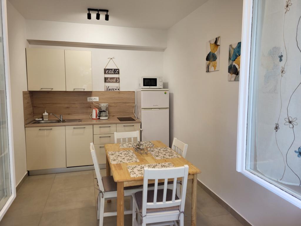 Zelo tiha in udobna namestitev. Lastnica je zelo prijetna in ustrežljiva gospa. Apartma je čist, lepo opremljen in popolnoma opremljen. Do plaže je kratek sprehod, tako da se lahko kar v kopalkah odpravite tja. Trgovina je oddaljena cca 5-10 minut hoje, tik pod apartmajem sta dve restavraciji, ena po ugodnih cenah, druga bolj luksuzna. Parkiranje je malo bolj zapleteno, a ni grozno. Radi bi se še vrnili sem.