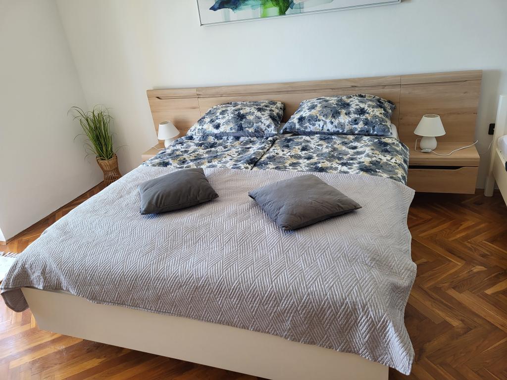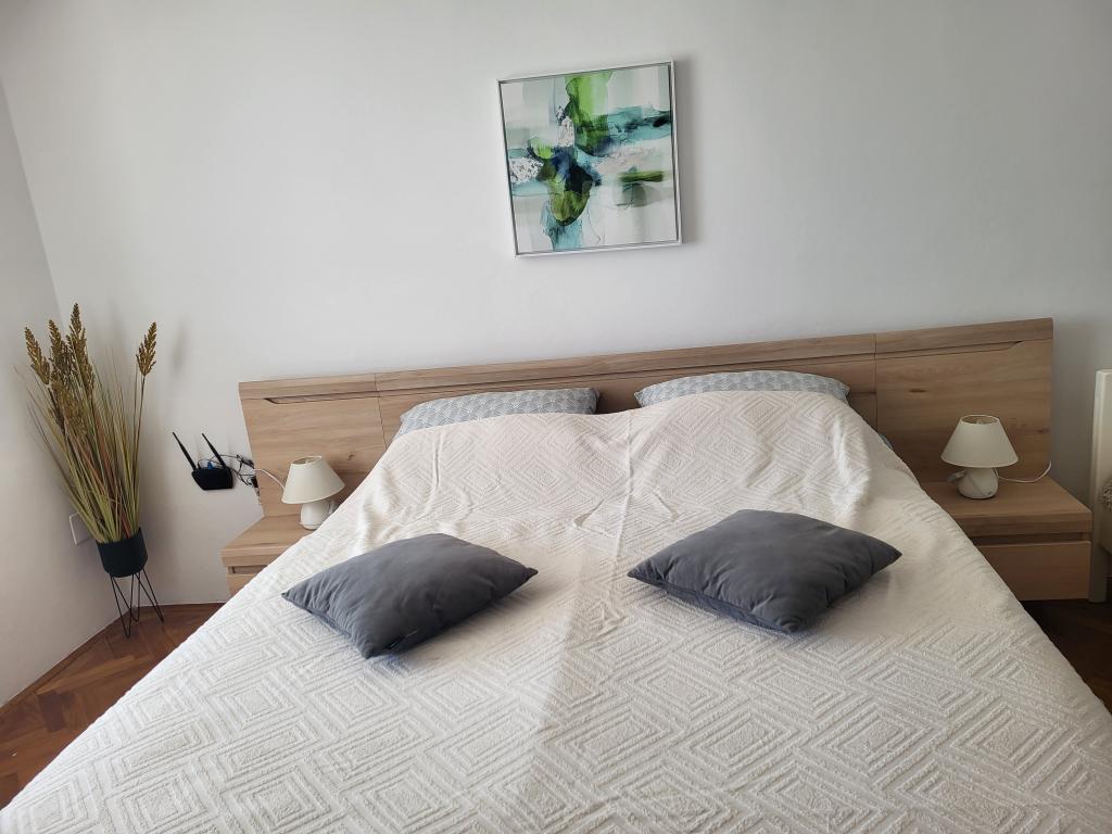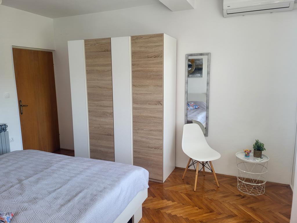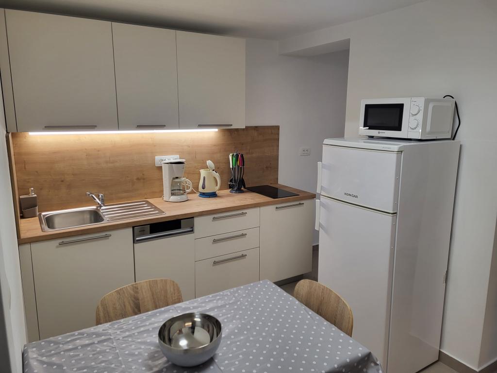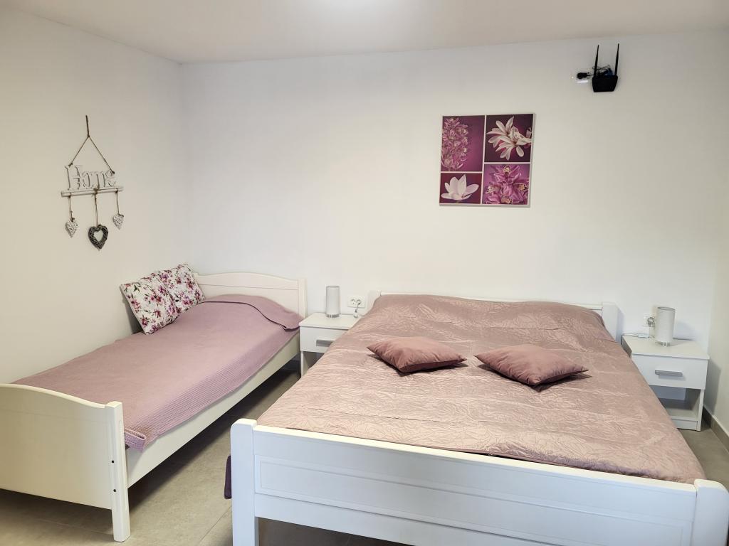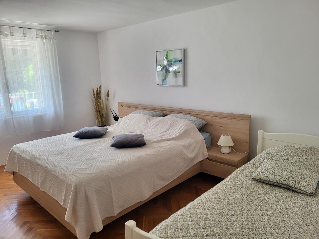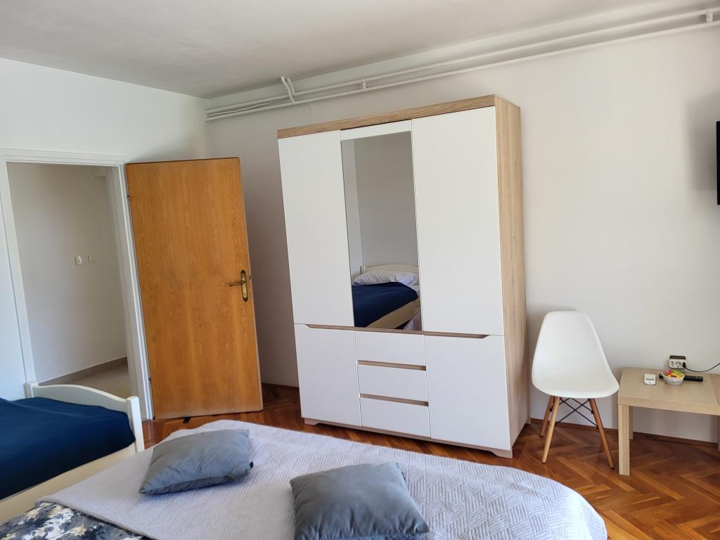 Zelo tiha in udobna namestitev. Lastnica je zelo prijetna in ustrežljiva gospa. Apartma je čist, lepo opremljen in popolnoma opremljen. Do plaže je kratek sprehod, tako da se lahko kar v kopalkah odpravite tja. Trgovina je oddaljena cca 5-10 minut hoje, tik pod apartmajem sta dve restavraciji, ena po ugodnih cenah, druga bolj luksuzna. Parkiranje je malo bolj zapleteno, a ni grozno. Radi bi se še vrnili sem.