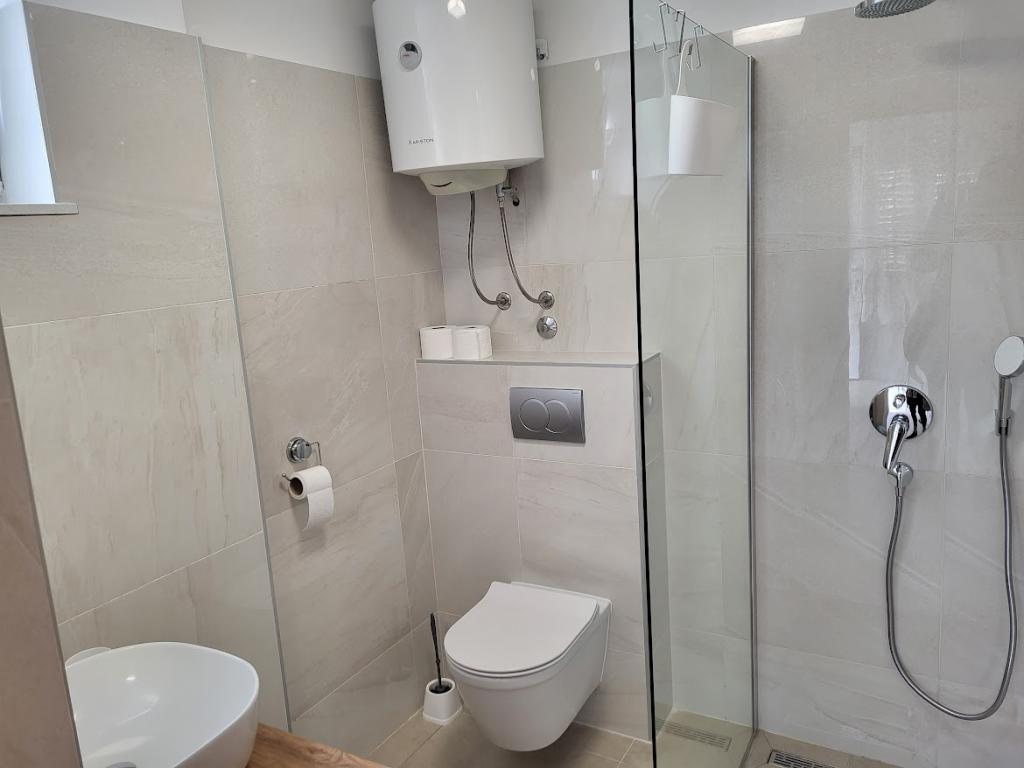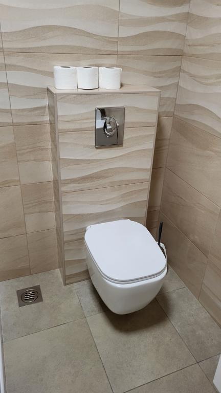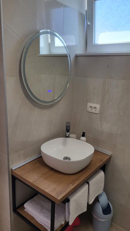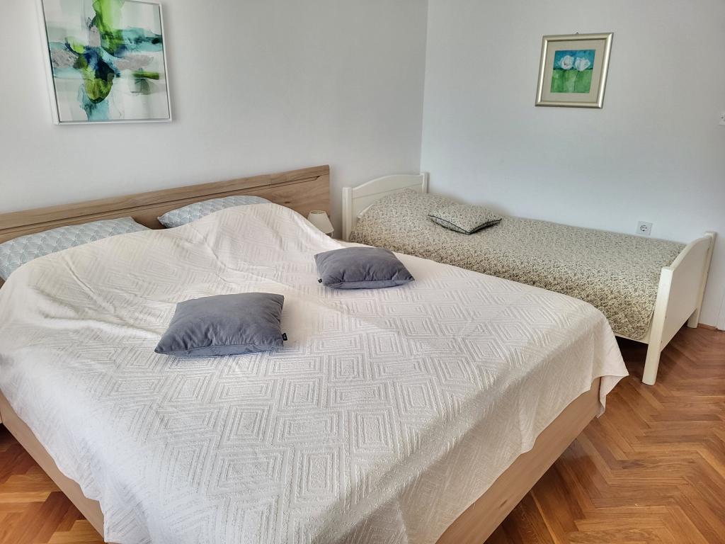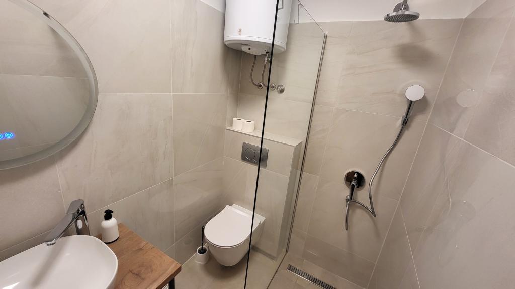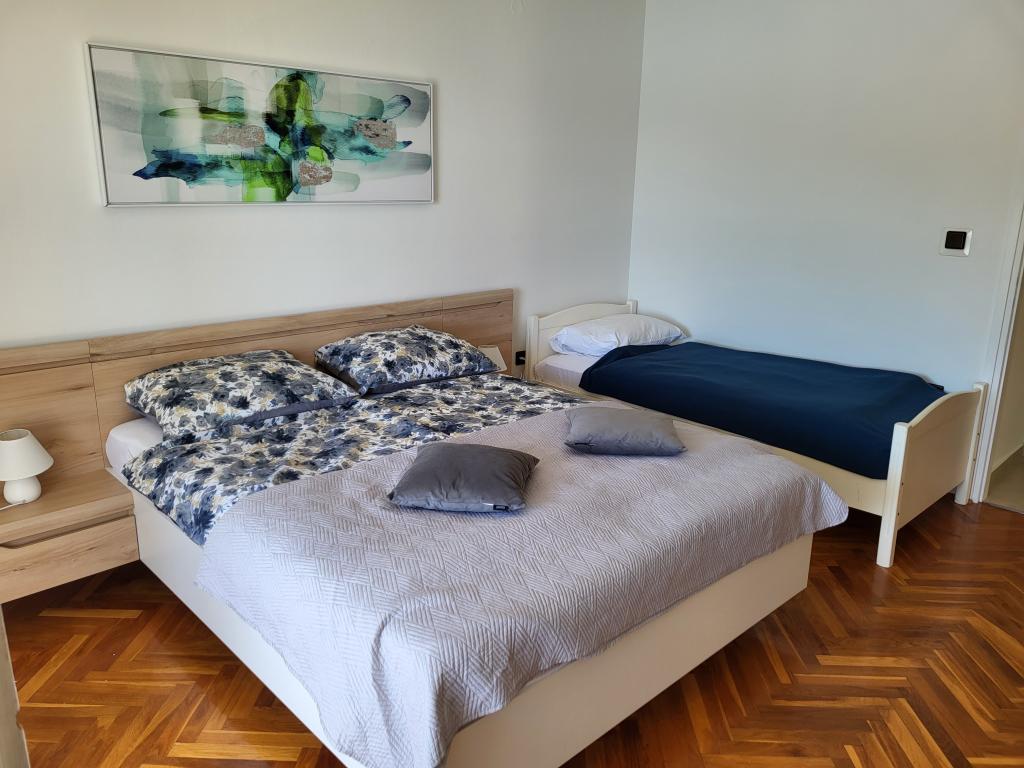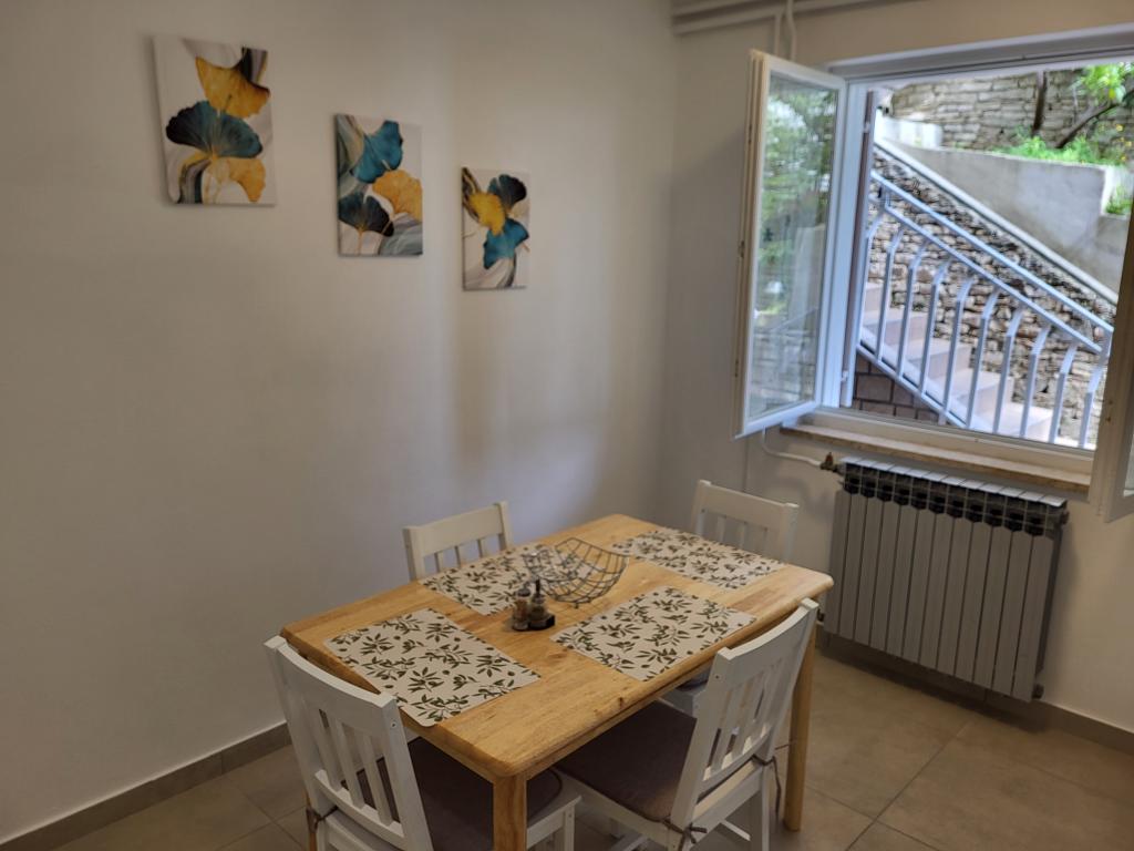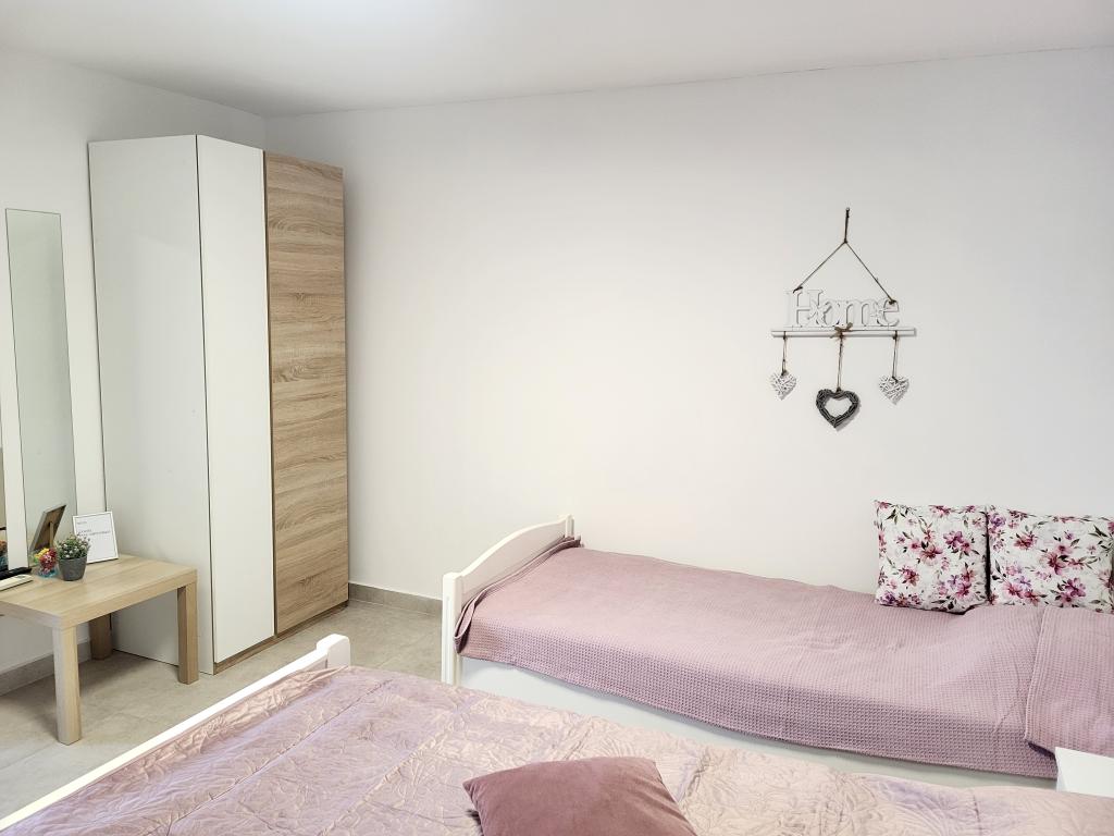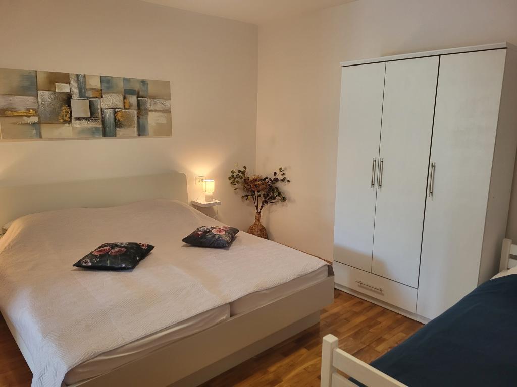 Zelo tiha in udobna namestitev. Lastnica je zelo prijetna in ustrežljiva gospa. Apartma je čist, lepo opremljen in popolnoma opremljen. Do plaže je kratek sprehod, tako da se lahko kar v kopalkah odpravite tja. Trgovina je oddaljena cca 5-10 minut hoje, tik pod apartmajem sta dve restavraciji, ena po ugodnih cenah, druga bolj luksuzna. Parkiranje je malo bolj zapleteno, a ni grozno. Radi bi se še vrnili sem.