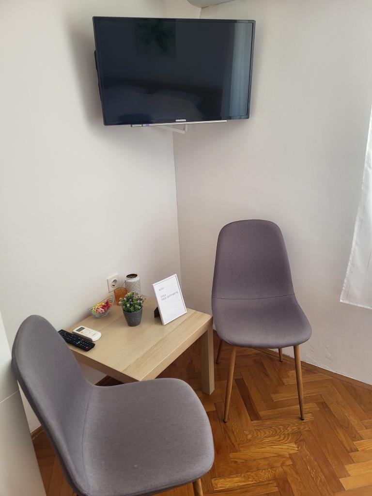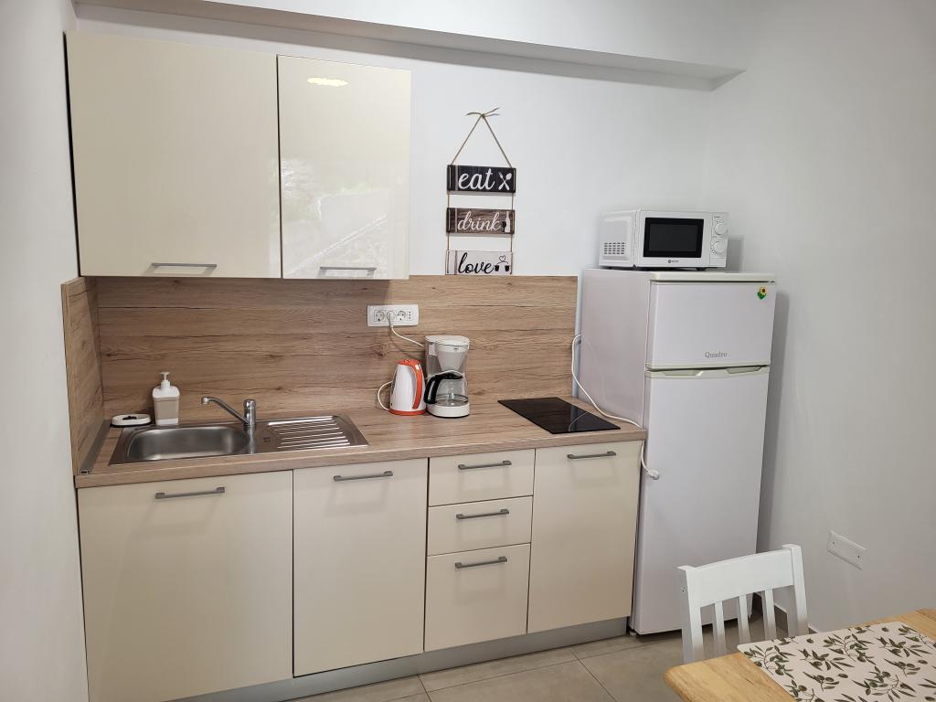 Lepa garsonjera, na dobri lokaciji, odlično opremljena. Idealno za tričlansko družino. Prva plaža je oddaljena že 200 m in ponuja pestro izbiro aktivnosti na vodi. Lastnica Lola je zelo prijazna in na voljo za vse, kar potrebujete za prijetno bivanje. Za vsako priporočilo!
