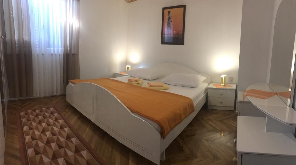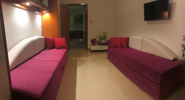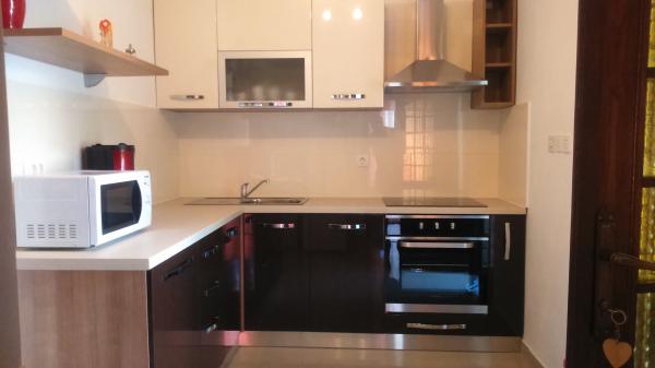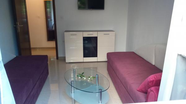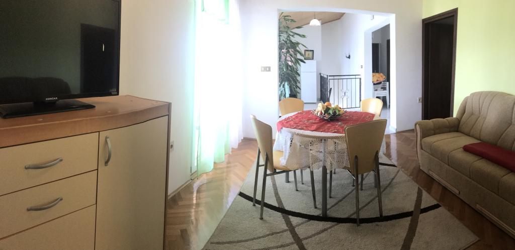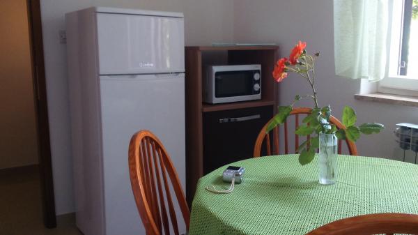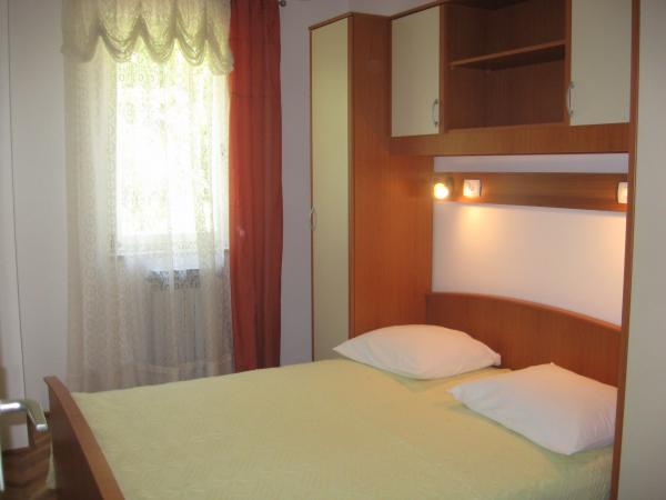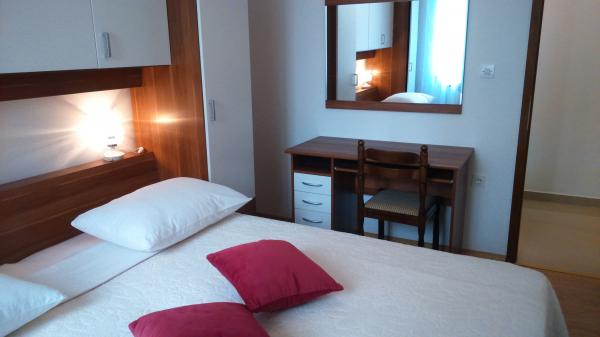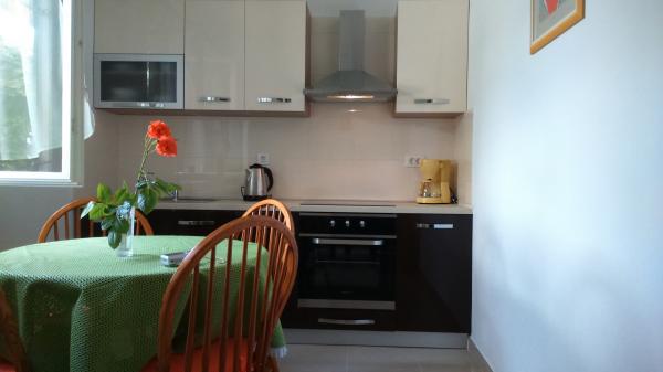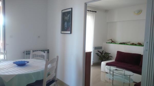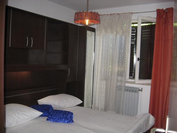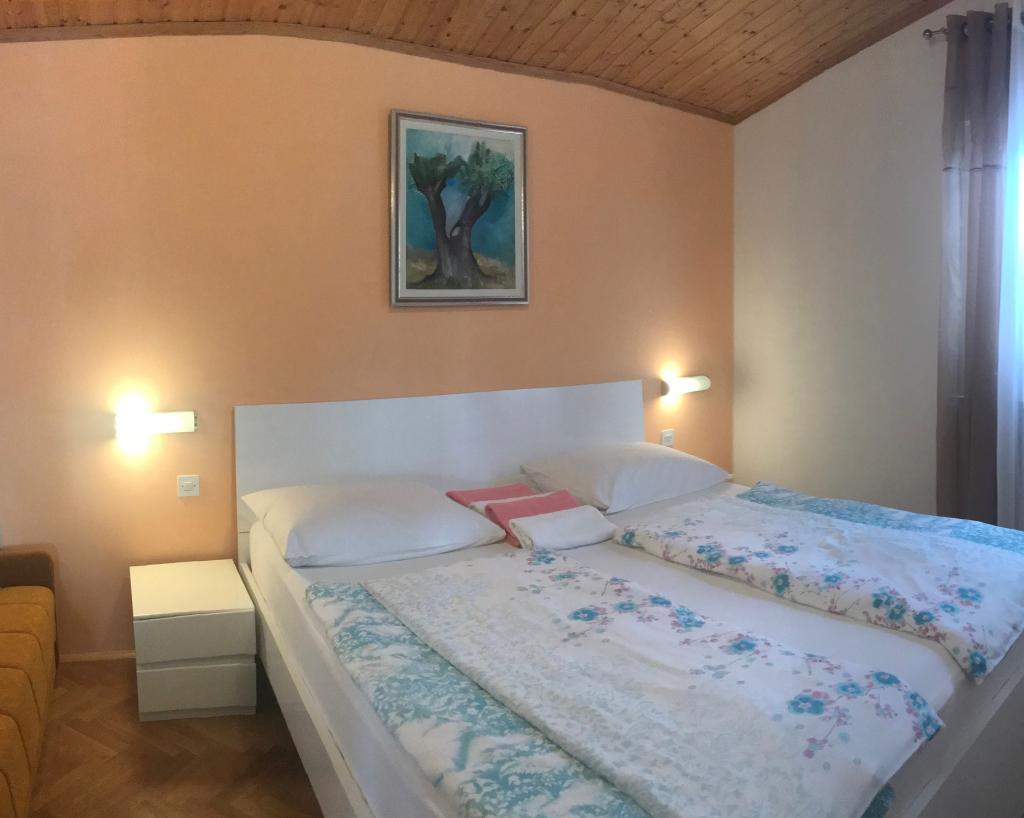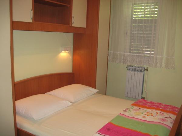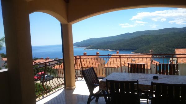 Gostitelja par je bil zelo prijazen in ustrežljiv, ob prihodu sta naju pričakala s svežim pecivom in hladnimi pijačami. Namestitev je popolna, ogromna terasa ponuja čudovit razgled na morje. Kuhinja je dobro opremljena, ločene sobe pa so vsem nudile zasebnost. Namestitev je zelo ugodna za denar, edina slabost je strm dolg sprehod po gorskem pobočju. Uživali smo v plavanju v belih skalnatih zalivih s čisto modro vodo. Do bližnjih plaž se lahko pride z avtomobilom, manj pa peš, v približno 20–25 minutah. Večji supermarketi so v sosednjem mestu, manjše trgovine pa najdete tudi v Rabcu. Obalna peš ulica ima zelo dobre restavracije, sladoledarne in majhne trgovine. Priporočamo jo aktivnim družinam in skupinam prijateljev. Z veseljem bi se vrnili.