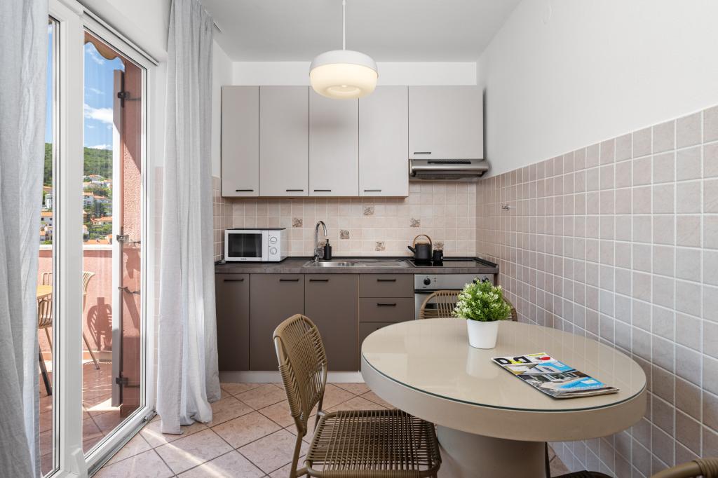 Čudovit apartma z veliko teraso v središču Rabca, s pogledom na morje, 100 m od morja, in drugi apartmaji imajo terase s pogledom na morje, vse trgovine so na voljo. Lastniki so zelo prijazni, ustrežljivi, gostoljubni, prav odlični. Zelo priporočljivo.