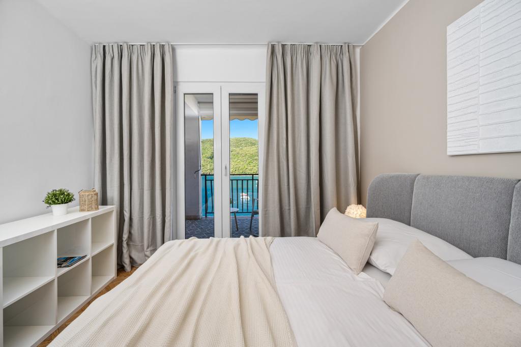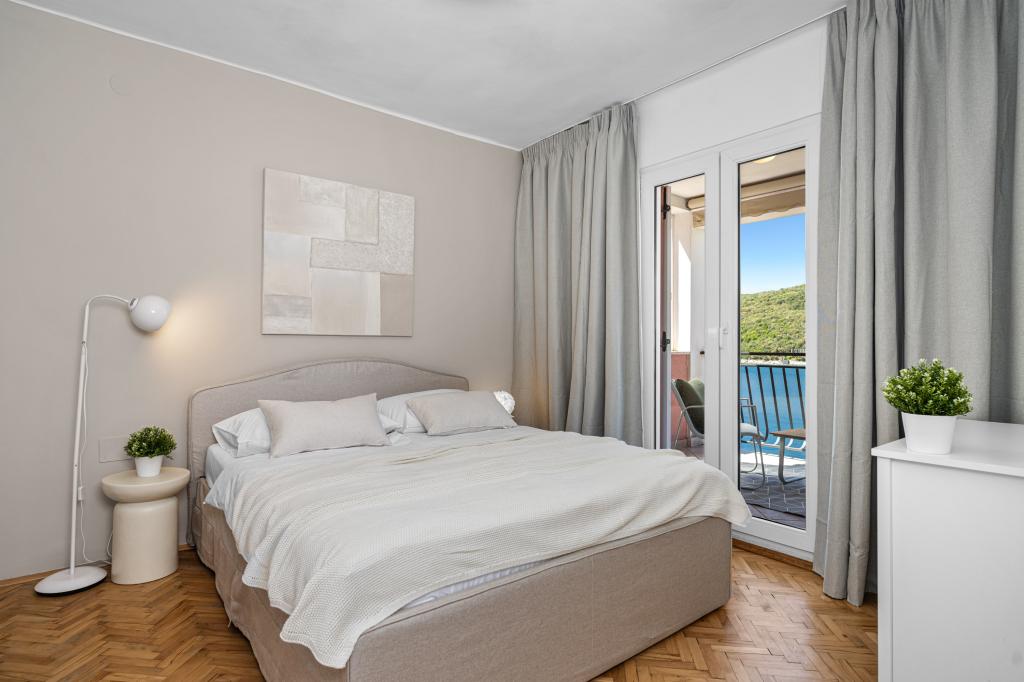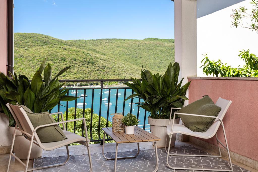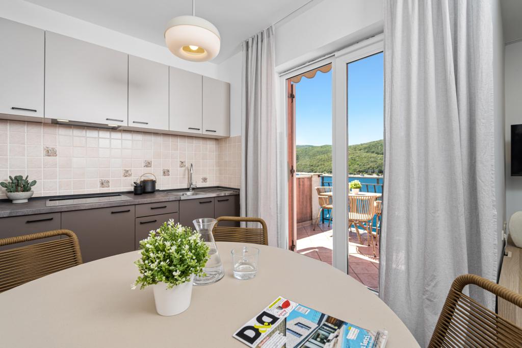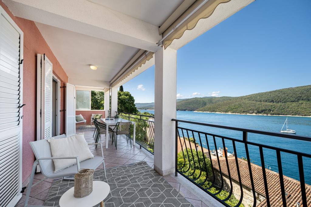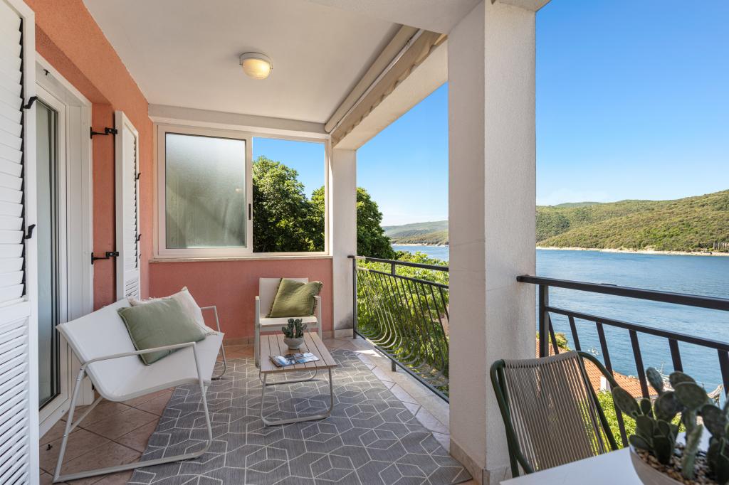 Lepa garsonjera za dve osebi, standardno opremljena z vsem, kar potrebujete. Velika terasa s čudovitim pogledom na zaliv. Apartma ne priporočam ljudem, ki imajo težave z nogami, 110 korakov od morja do apartmaja, vendar je vreden ogleda. Plaža cca 10 min. Rabac je lep. Upam, da se bomo vrnili.