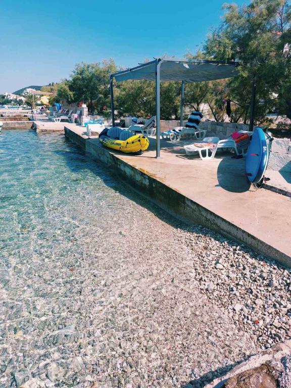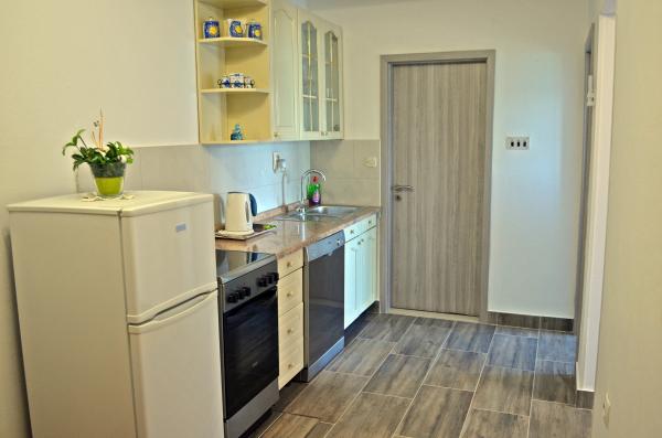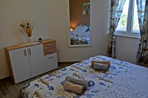 Namestitev in gostitelji odlični. Apartmaji so opremljeni z vsem, kar potrebujete na počitnicah. Morje je tik pod apartmajem. Plaža je betonska z ležalniki. Parkirišče je zagotovljeno. Gostitelji so zelo prijazni, vedno na voljo in pripravljeni pomagati. Vsekakor priporočam.
