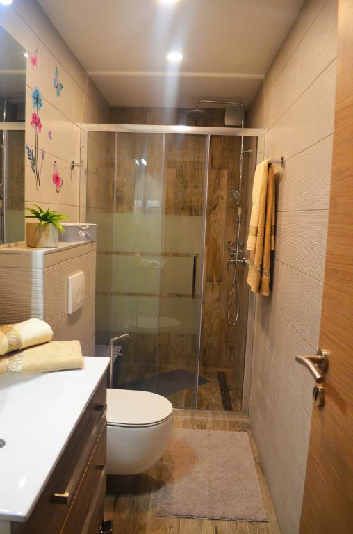 Namestitev in gostitelji so bili odlični. Apartmaji so opremljeni z vsem, kar potrebujete na počitnicah. Morje je tik pod apartmajem. Plaža je betonska z ležalniki. Parkirišče je zagotovljeno. Gostitelji so zelo prijazni, vedno na voljo in pripravljeni pomagati. Vsekakor priporočam bivanje v Rininem apartmaju, zagotovo se bomo še vrnili.
