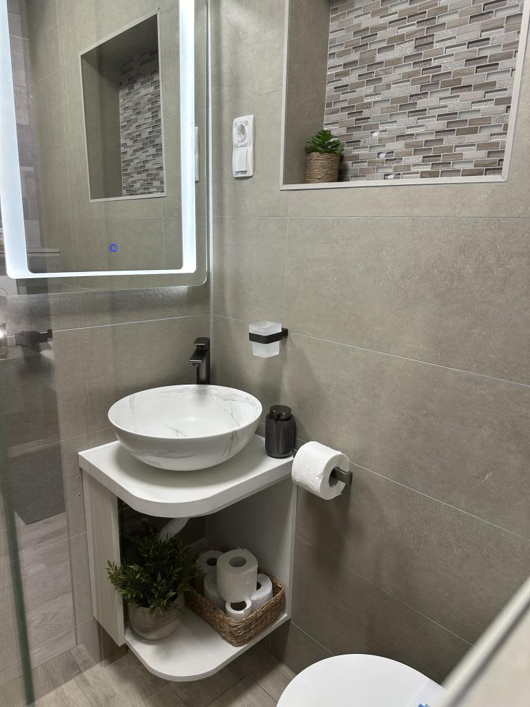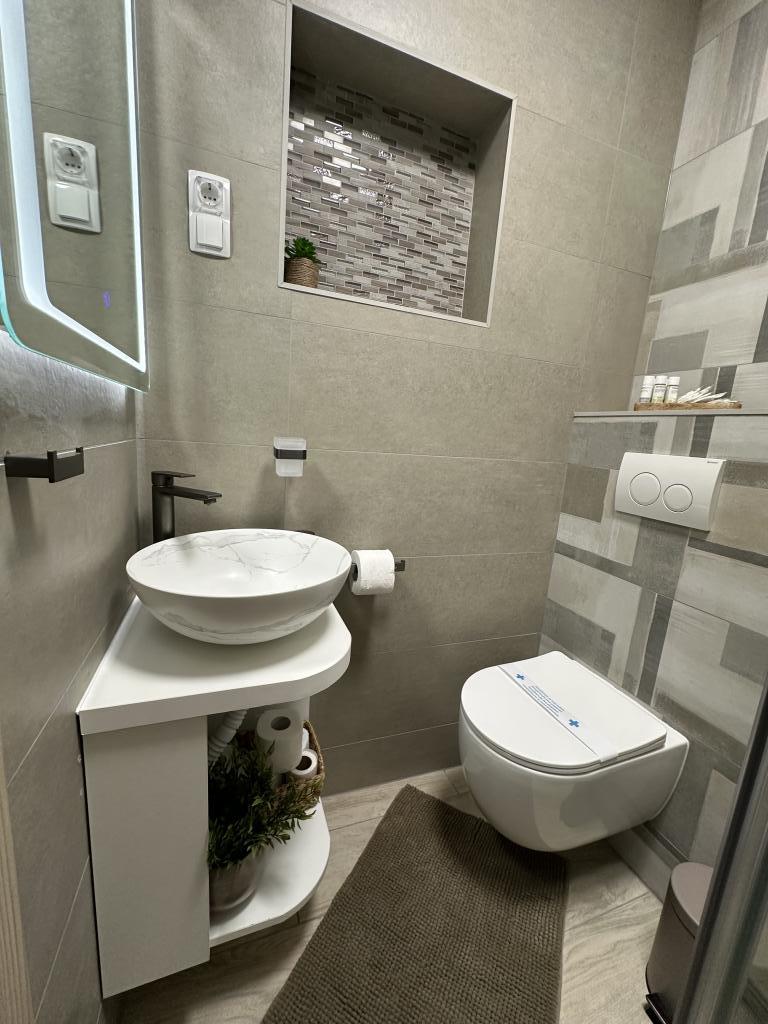 S fantom sva bila navdušena nad apartmajem Deluxe, kjer sva bivala 10 dni. Apartma je čist in ima vse, kar potrebuješ, če želiš ostati doma in kuhati, se sprostiti na udobnem raztegljivem kavču in gledati pametno televizijo ali uživati v lepem razgledu na morje s terase. Še posebej sva cenila, da nisva slišala drugih gostov ali sosedov, rolete v spalnicah in klimatsko napravo, ki je bila dovolj močna, da je ohladila celotno stanovanje. Kuhinja je popolnoma opremljena s posodo, lonci in ponvami, nekaj začimbami, ima pa tudi pečico, mikrovalovno pečico, aparat za kavo, pomivalni stroj, nekaj kapsul za pomivalni stroj in detergent za pomivanje posode. Na voljo so tudi pralni stroj, detergent za perilo in mehčalec. V kopalnici prejmete gele za prhanje, kreme za telo in vatirane blazinice. Bili smo prijetno presenečeni in imeli smo občutek, da imamo vse, kar bi lahko potrebovali. Lokacija je mirna, tik ob morju – idealna za vse, ki iščejo mir in tišino. Nahaja se približno 15 minut vožnje od mesta Korčula, kjer je veliko dobrih (a dragih) možnosti za večerjo, enodnevni izlet ali preprosto sprehod po čudovitem starem mestnem jedru. Med našim bivanjem je pihal precej močan veter, kar je pomenilo, da ni bilo tako vroče in je bilo prijetno preživeti čas zunaj. V tem apartmaju imate na terasi svoje ležalnike, na voljo pa so tudi skupni ležalniki za vse goste tik ob morju, v senci. Lastnica Rina je zelo prijazna in ustrežljiva – celo prejeli smo pladenj dobrodošlice, kar smo zelo cenili. Ta kraj toplo priporočam; že zdaj se želimo vrniti naslednje leto!