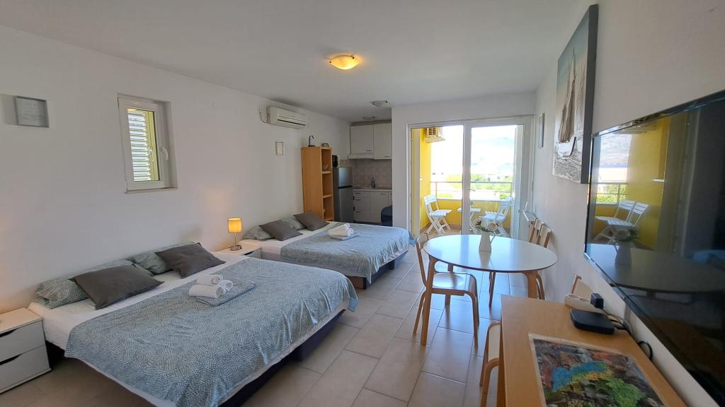 Bivali smo na prelomu julija in avgusta. Apartmaji so bili čisti in dobro vzdrževani, z vsem, kar smo potrebovali, od brisač, mila in čistilnih sredstev. Kuhinja je bila dobro opremljena. Nepremičnina je blizu morja, plaže pa so mirne in idealne za otroke, s plitvo vodo. Zelo smo bili navdušeni nad prijazno lastnico Biljano. Obožuje to, kar počne, in svoje goste sprejema z veliko prijaznostjo in skrbnostjo, vedno nasmejana in pripravljena pomagati. Pozorna je bila na vsako podrobnost, vsak dan nas je vprašala, kaj potrebujemo, in nam prinesla igre, družabne igre in uganke za naše otroke. Z veseljem bi se vrnili v ta čudovit kraj. Priporočam ga vsem, ki iščejo mir, čudovit razgled in toplo vodo. Iwona, Mariusz, Monia in Dawid