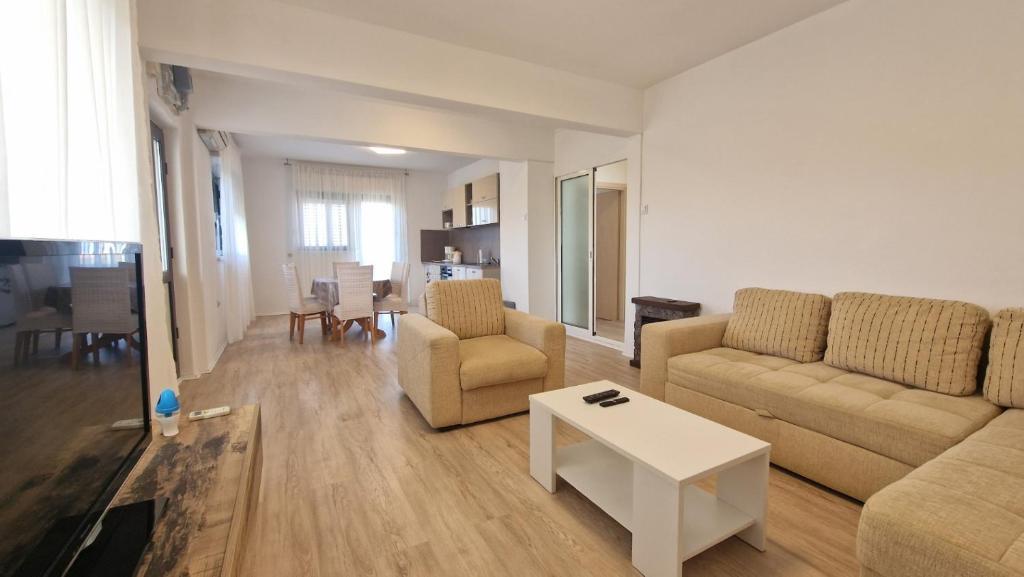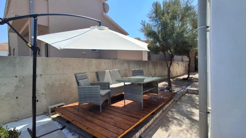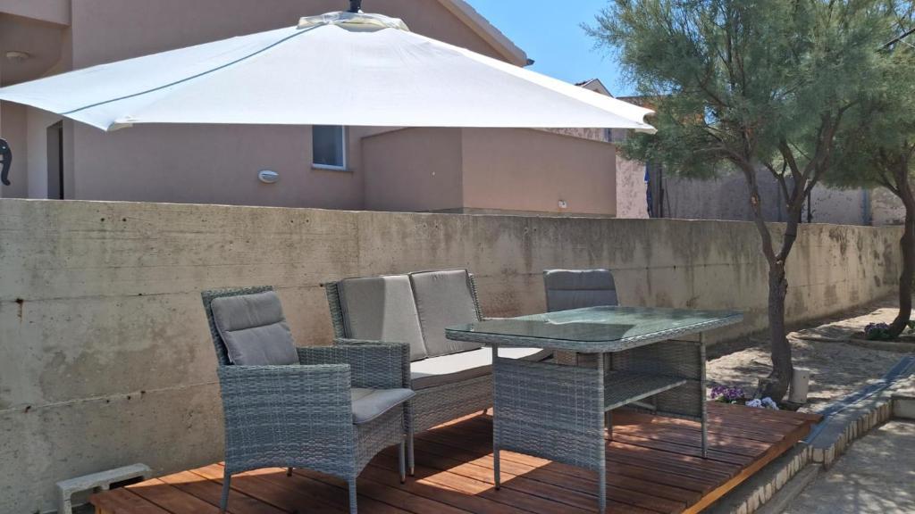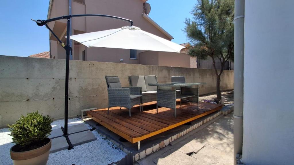 Našim gostom sta na voljo 2 popolnoma ločena apartmaja, parkirišče in celoten vrt. Na vrtu je poseben objekt z žarom in zunanjim tušem. Apartma ponuja čudovit razgled na morje in goro Velebit, plaža pa je oddaljena le 3 minute hoje.