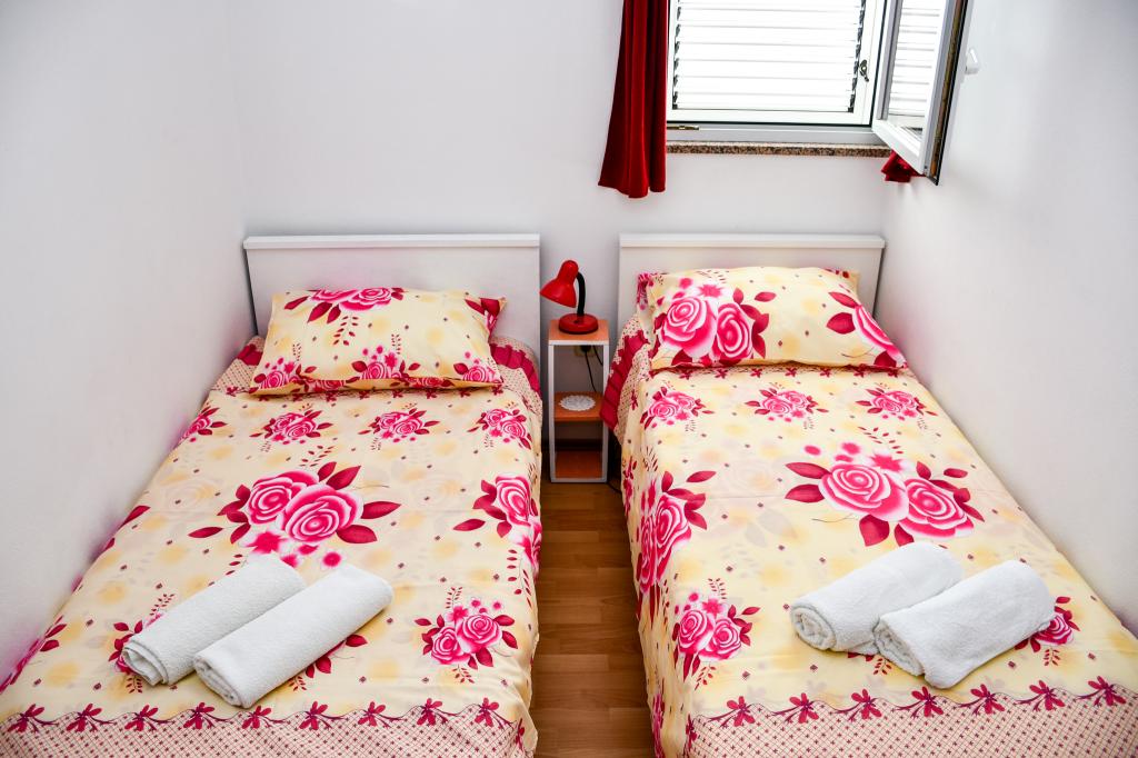 Apartmaji se nahajajo v mirnem predelu Ražanac brez hrupa in glasnega prometa ter so idealni za sprostitev in uživanje v počitniški sezoni. Nahajajo se v zgornjem nadstropju družinskega doma. Vsak apartma je sestavljen iz dveh ločenih prostorov, kuhinje in kopalnice. Apartmaji so opremljeni z vsemi potrebnimi udobja, vključno s klimatsko napravo, internetom in satelitskim sprejemnikom. Vsak apartma ima balkon s pogledom na morje in planino Velebit. Objekt ima tudi veliko dvorišče z možnostjo parkiranja prikolic. Objekt je od plaže oddaljen le 5 minut hoje, trgovino, restavracije, pošto, ambulante, lekarne, tržnico, knjižnico in vse druge potrebne objekte.