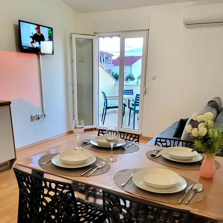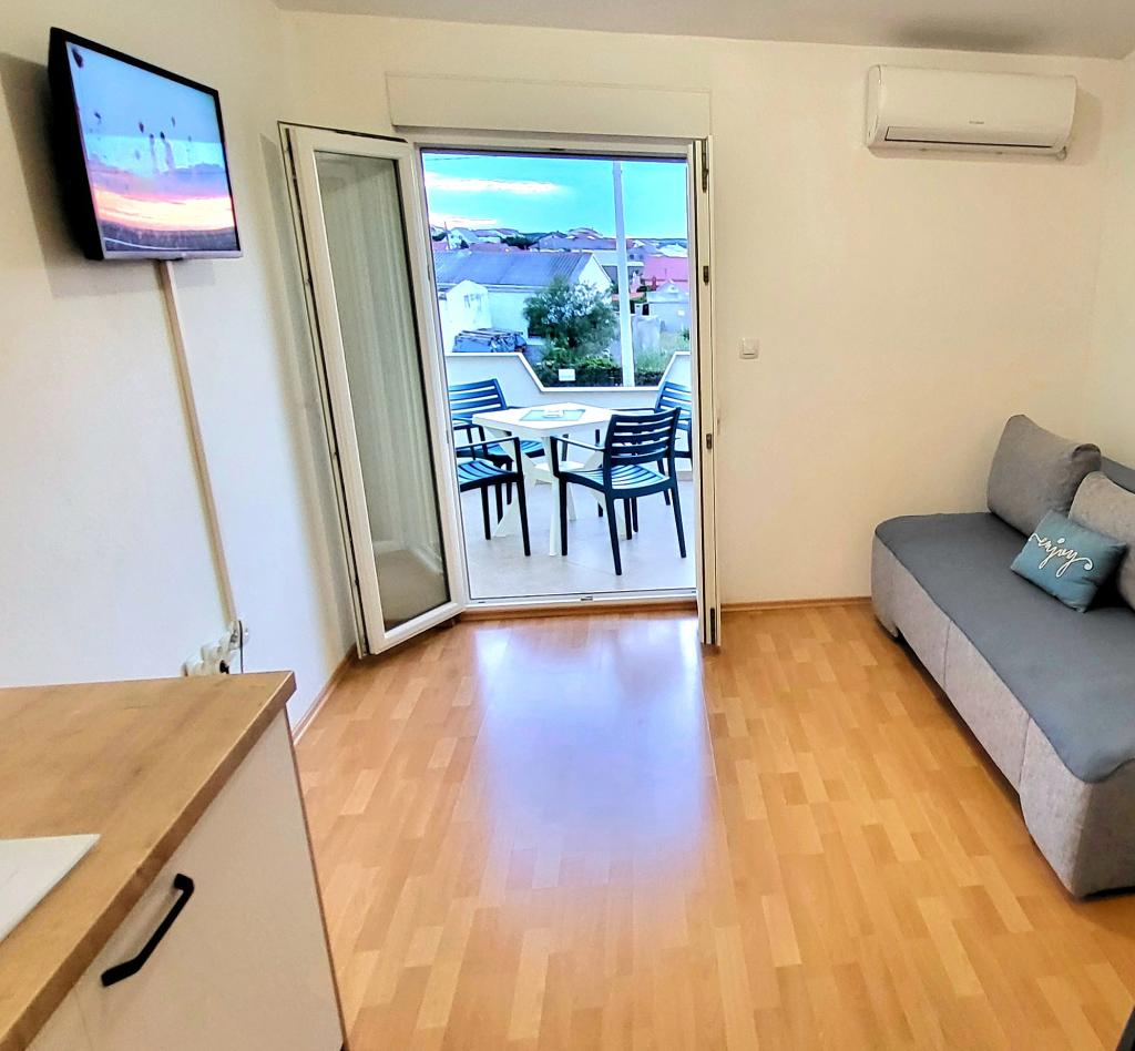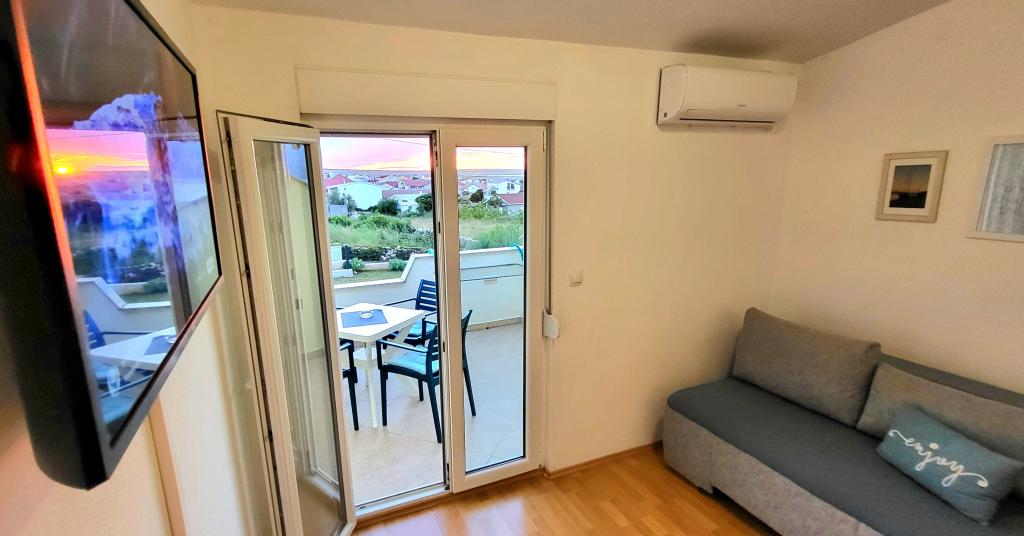 S pripravljenostjo tako Marka kot Rafaele smo bili izjemno zadovoljni. Apartma je bil čist in dobro opremljen. Lepo okolje, blizu plaže in centra. Balkon ima pogled na morje in Velebit. Morje je čisto, plaža je prodnata.