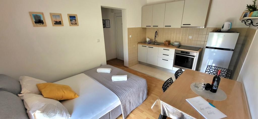 Že ob prihodu smo imeli prijeten sprejem in prijaznost lastnikov. Za dobrodošlico ki sta malo presenečeni in so bili vedno na voljo za vse informacije. Apartma dovolj prostoren tudi za družino z dojenčkom in majhnim otrokom. Je dobro in praktično opremljen in ima vse kar potrebuješ za udobno bivanje. Lokacija je primerna za vse ki potrebujete mir in kraj za oddih od vsakdanjih obveznosti. Morje je kristalno čisto v bližini apartmaja in najpomembnejše dostopno z otroškim vozičkom. Vse kar potrebuješ je na dosegu roke najpomembnejše pa da imajo jutranjo tržnico z svežimi ribami in sadjem ter zelenjavo lokalnih pridelovalcev. V večernih urah se sprehodiš ob morju se usedeš na klop otroci pa imajo na voljo kotiček za svoje radosti. Prijetna klima z nežnim vetrom.