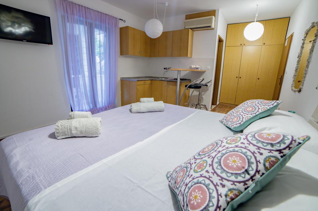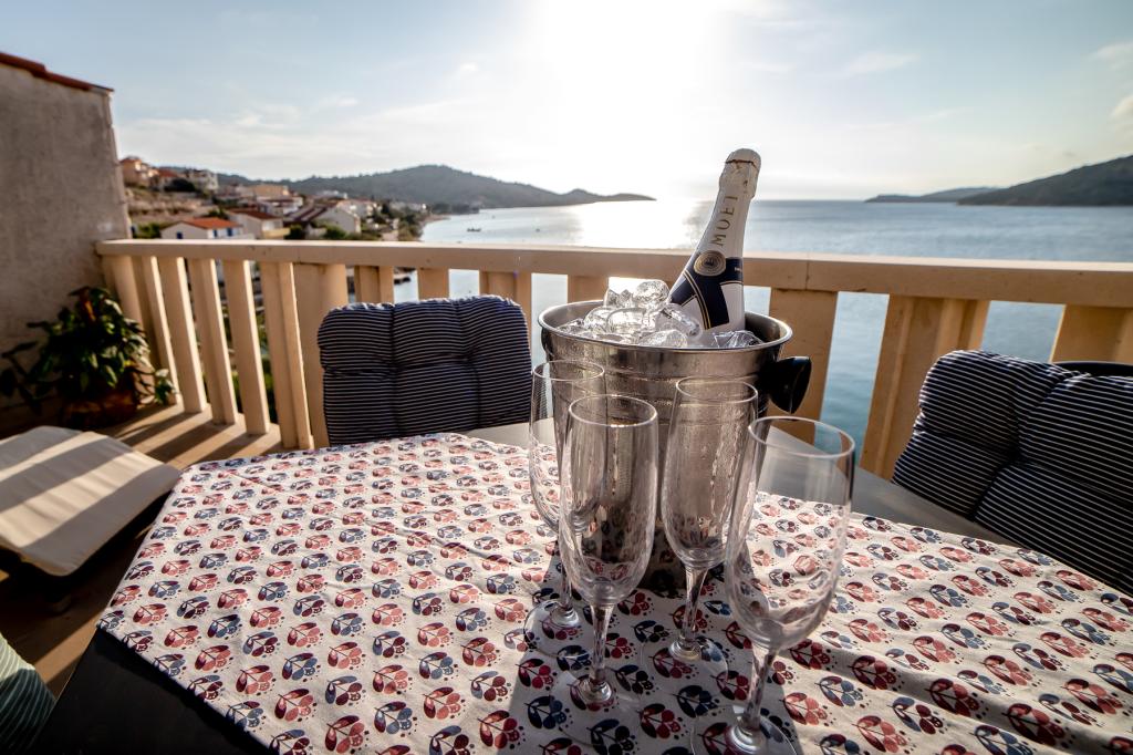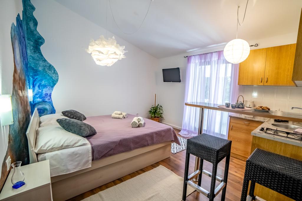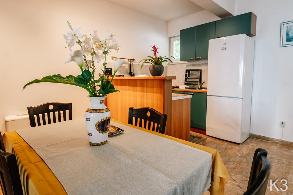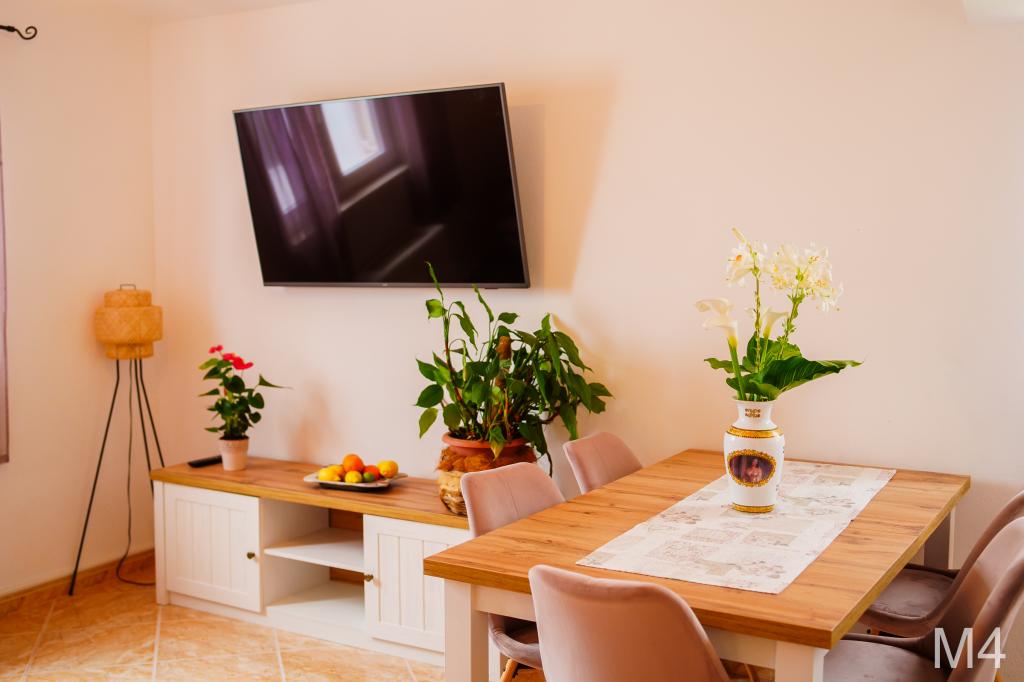 V sklopu naših apartmajev nudimo tudi restavracijo s tradicionalnimi dalmatinskimi jedmi, pripravljenimi na domač način. Prav tako imamo v sklopu prenočišča tržnico z vsemi potrebščinami ter dnevno svežim kruhom in ostalimi živili. Možnost pomoči pri organizaciji raznih izletov, potapljanja, ribolova, najema čolnov in mnogih drugih ponudb naših lokalnih sodelavcev.