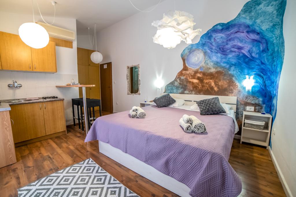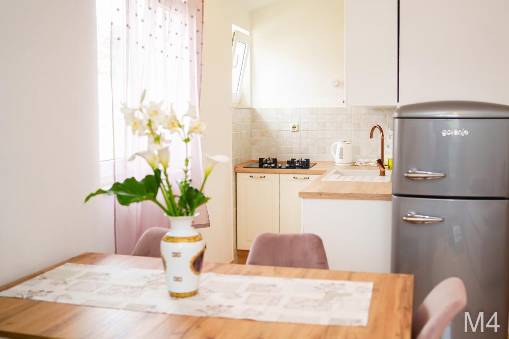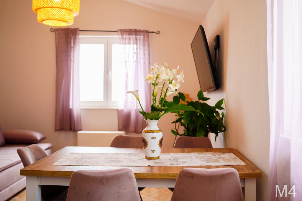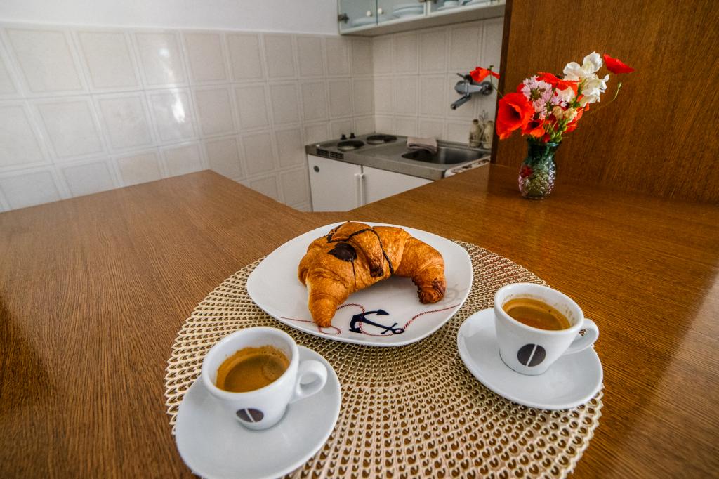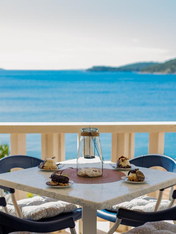 V sklopu naših apartmajev nudimo tudi restavracijo s tradicionalnimi dalmatinskimi jedmi, pripravljenimi na domač način. Prav tako imamo v sklopu prenočišča tržnico z vsemi potrebščinami ter dnevno svežim kruhom in ostalimi živili. Možnost pomoči pri organizaciji raznih izletov, potapljanja, ribolova, najema čolnov in mnogih drugih ponudb naših lokalnih sodelavcev.