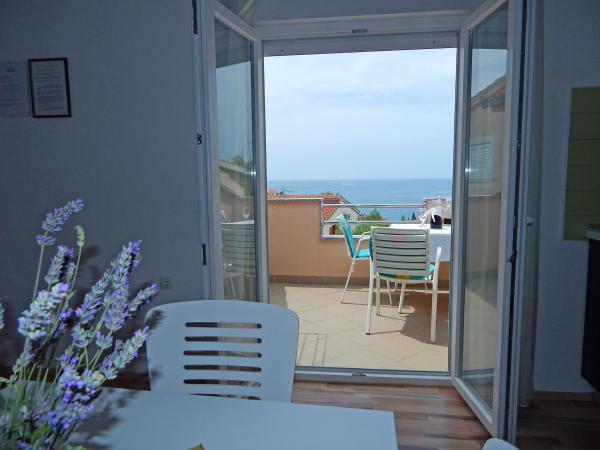Bivanje v tem apartmaju je bilo prava poslastica. Apartma je izjemno lep, brezhibno čist in opremljen z vsem, kar potrebujete za prijeten dopust. Gostitelja sta izjemno gostoljubna, vedno na voljo, če kaj potrebujete, a hkrati nevsiljiva in diskretna. Terasa s čudovitim razgledom na morje naredi poseben vtis. Idealen kraj za jutranjo kavo ali večerno sprostitev. Plaža je oddaljena le dve minuti hoje, kar nam je popolnoma ustrezalo. Zagotovo se bomo še vrnili.