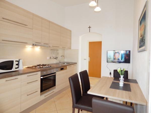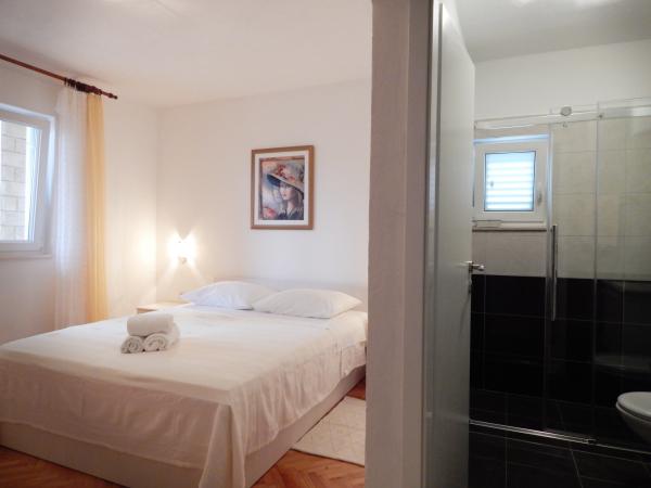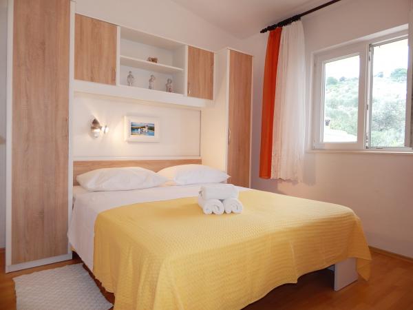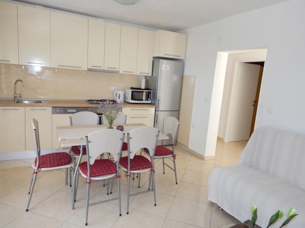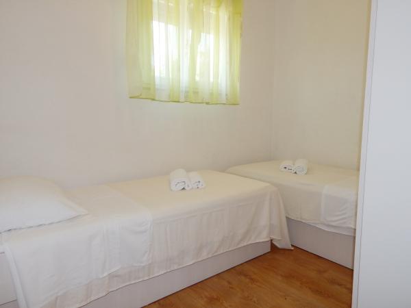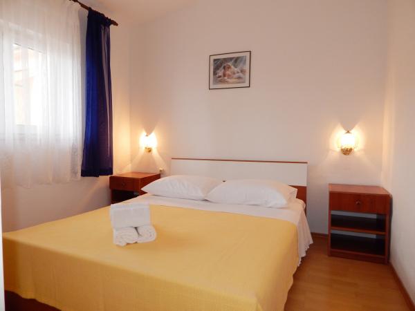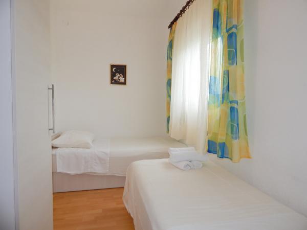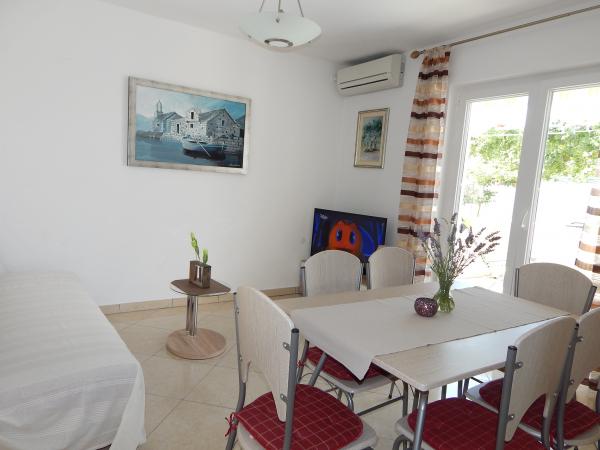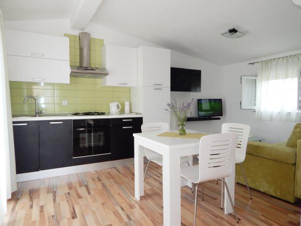 Nedeljko Apartmaji se nahajajo v mirnem podeželskem območju skoraj neokrnjeno naravo in zelo čisto vodo. Imamo 5 enot namenske zasebni vhod in parkirno mesto v sodni stavbi. Apartmaji so popolnoma opremljeni in moderno. Smo se nahajajo v tretji vrsti od morja. Imamo 2 minut do morja in 10 minut do centra mesta. Imamo konkreten pomol za naše goste. Za stavbo je žar z veliko mizo za goste in prijetnem in toplem zunanji tuš. Tudi na vrtu pred hišo je topogan otroci. V bližini apartmaja je športni center za otroke lahko svobodno igrajo.