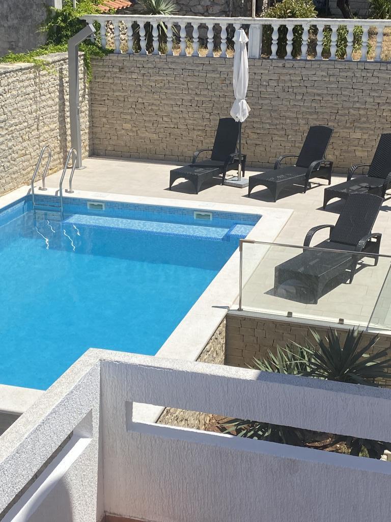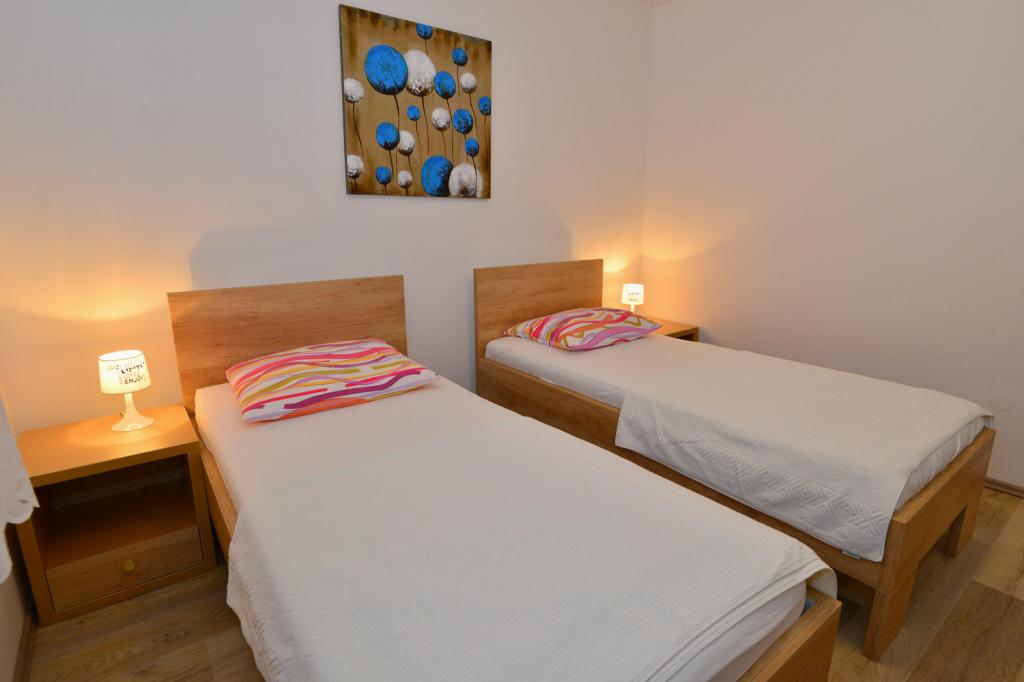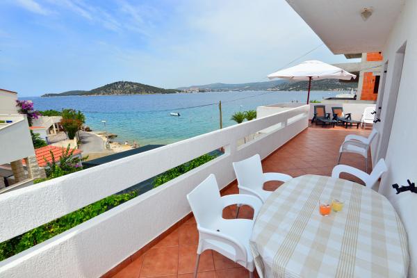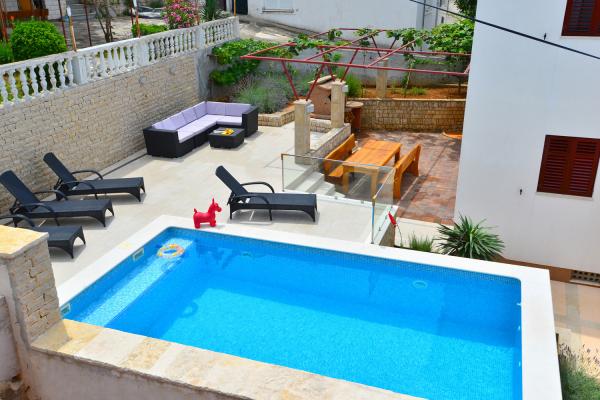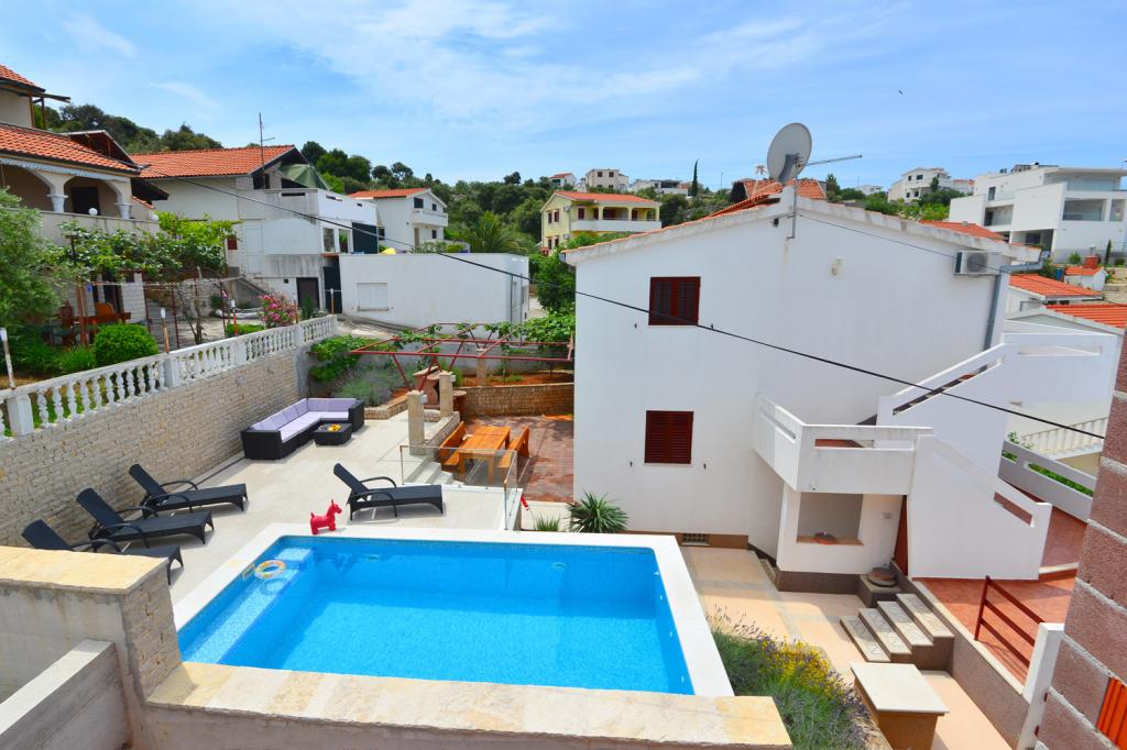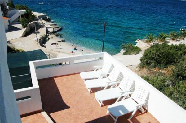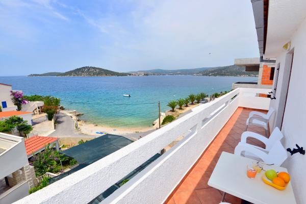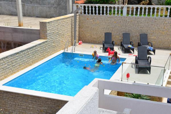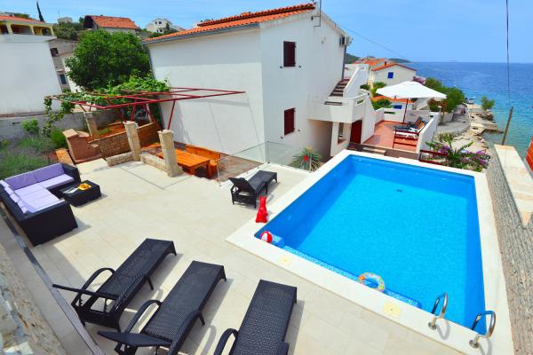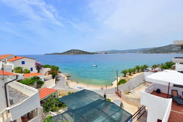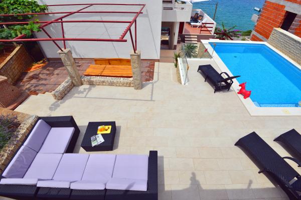 Apartmaji so zelo udobne in se nahajajo v hiši ob morju. Tik nad majhne plaže. Plaža je peščena in primerna za družine z otroki. Gostje, ki si želijo bolj intimno bivanje ob morju, se lahko odločijo za stijenovite delov obale, ki jih je mogoče doseči na kratek sprehod. Apartmaji so sestavljeni iz dveh prostorne spalnice, kopalnico, kuhinjo in veliko dnevno sobo. Vsak apartma ima teraso z mizo in stoli. Naši gostje uživajo ob jutranji kavi na terasi, ki ponuja čudovit razgled na morje in morje. Ob hiši je bazen, ki so jih gostje nastanjeni v naših dveh apartmajih v skupni rabi. Poleg bazena je prostorna vrtna opremljena z ležalniki in jedilno mizo. Gostje lahko uporabljajo nov žar, ki je določen za njihovo uporabo. Apartma je brezplačna uporaba interneta. Oddaljenost od majhnega trga je 50 metrov. Na isti razdalji je restavracija / picerija. Oddaljenost od mesta Ražanj je 500 m. Užitek sprehod do Ražanj, ker pot ob morju