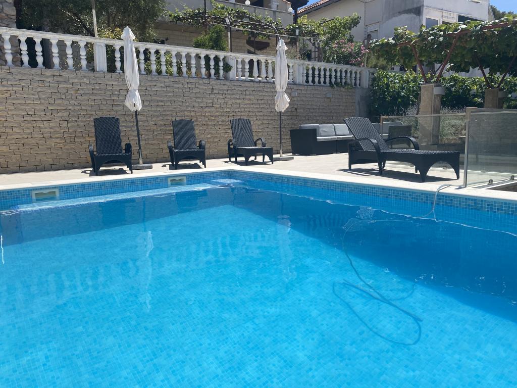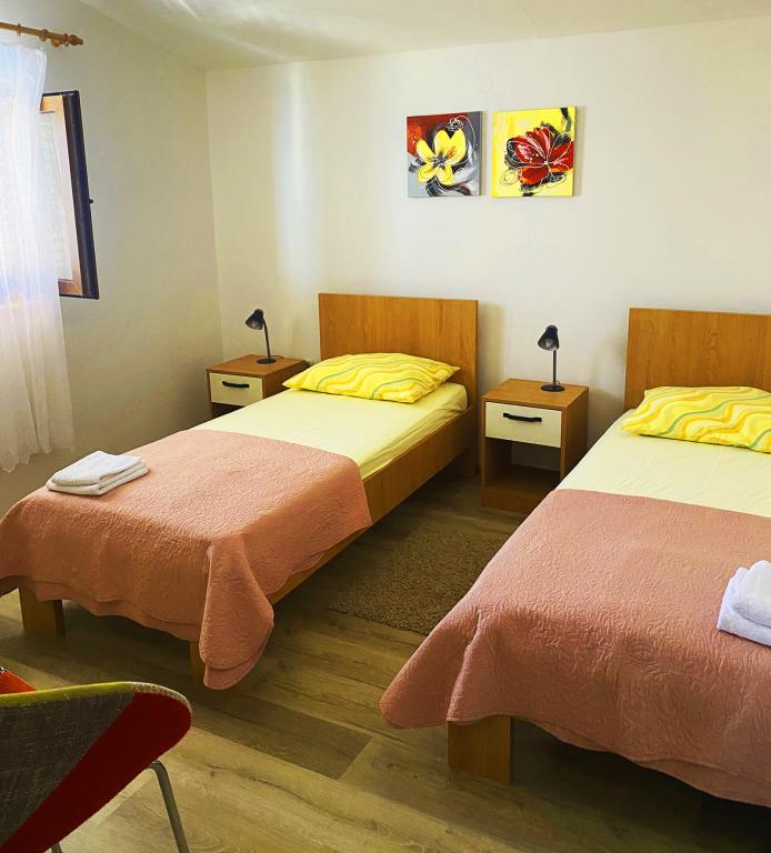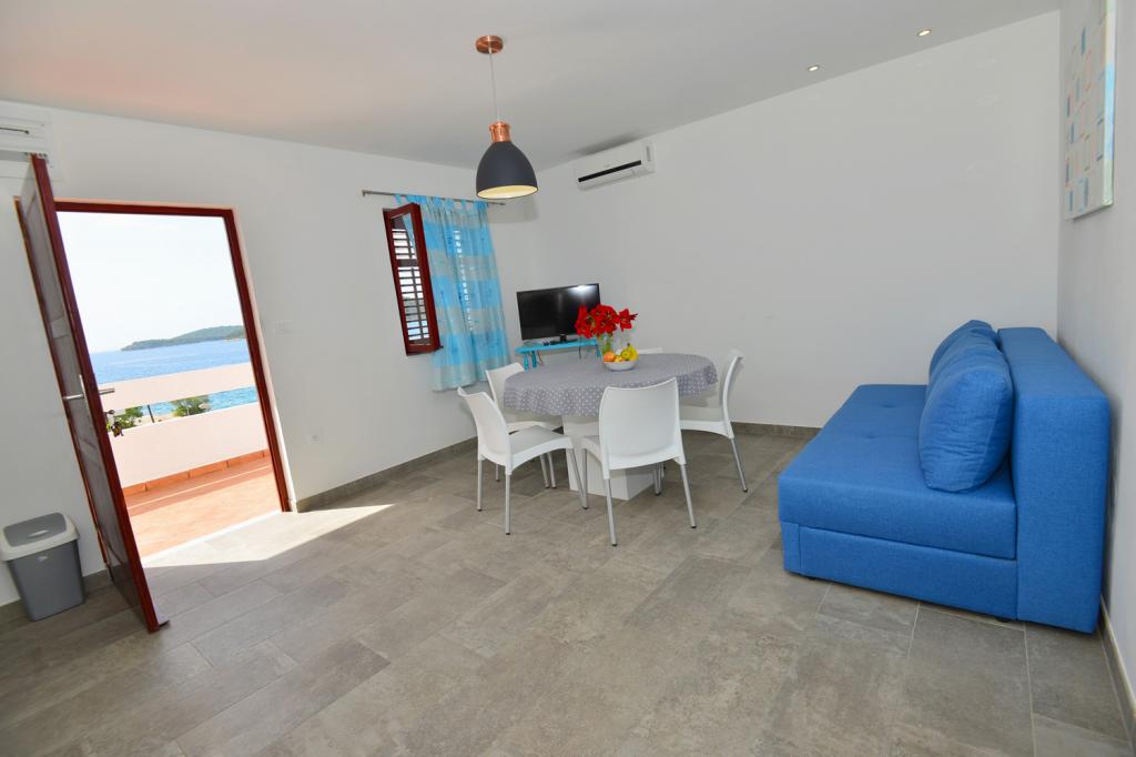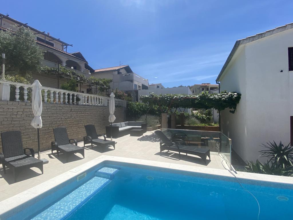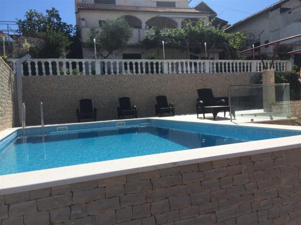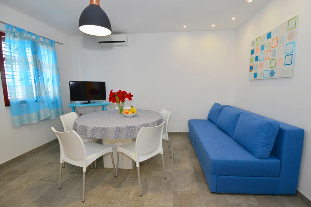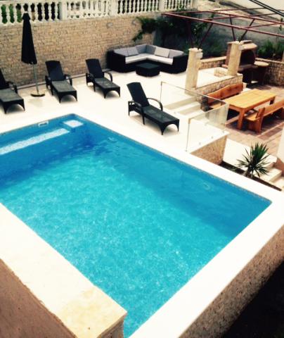 Apartmaji so zelo udobne in se nahajajo v hiši ob morju. Tik nad majhne plaže. Plaža je peščena in primerna za družine z otroki. Gostje, ki si želijo bolj intimno bivanje ob morju, se lahko odločijo za stijenovite delov obale, ki jih je mogoče doseči na kratek sprehod. Apartmaji so sestavljeni iz dveh prostorne spalnice, kopalnico, kuhinjo in veliko dnevno sobo. Vsak apartma ima teraso z mizo in stoli. Naši gostje uživajo ob jutranji kavi na terasi, ki ponuja čudovit razgled na morje in morje. Ob hiši je bazen, ki so jih gostje nastanjeni v naših dveh apartmajih v skupni rabi. Poleg bazena je prostorna vrtna opremljena z ležalniki in jedilno mizo. Gostje lahko uporabljajo nov žar, ki je določen za njihovo uporabo. Apartma je brezplačna uporaba interneta. Oddaljenost od majhnega trga je 50 metrov. Na isti razdalji je restavracija / picerija. Oddaljenost od mesta Ražanj je 500 m. Užitek sprehod do Ražanj, ker pot ob morju