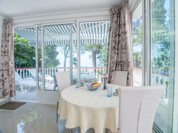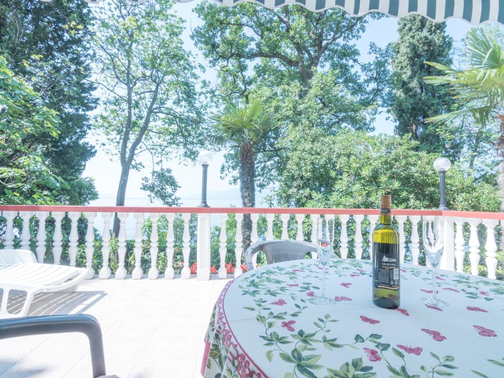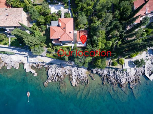 Apartma se nahaja v mirnem delu Rijeke, le 4 km od centra Opatije in 5 km oddaljen od središča Reke. Ima lasten izlet na plažo, ki je le 1 minut stran od apartmaja in izhod na promenado. Na voljo je zasebno zaprto parkirišče in žar. Ima veliko teraso s pogledom na Opatijo in otok Cres. Prihod pri nas boste imeli zagotovljeno zasebnost in potreben počitek, saj se apartma nahaja v ločeni stavbi.