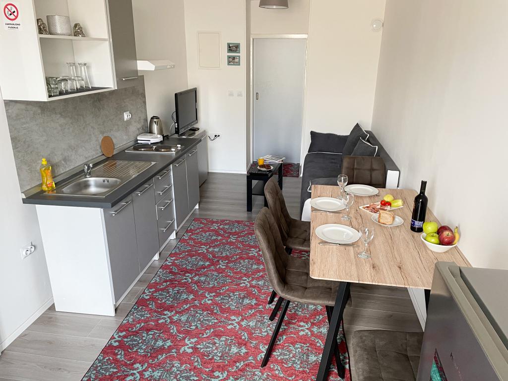 Apartmaji Sea Star se nahajajo v bližini centra Reke. Na novo prenovljeni in popolnoma opremljeni ponujajo vse, kar potrebujete za prijetno bivanje (za krajše in daljše bivanje). Apartma Sea Star 1 je sestavljen iz kuhinje (štedilnik, mikrovalovna pečica, hladilnik, grelnik vode, posoda in jedilni pribor), spalnice/dnevne sobe (ležišče z vzmetnim ležiščem 160x200cm, SAT TV, WIFI, posteljnina in brisače, raztegljiv kavč 140x200cm) in kopalnice (pralni stroj, sušilnik za lase). Apartma lahko sprejme 2 osebi (idealno za pare). Pred apartmajem je balkon s sedežno garnituro. Apartma Sea Star 2 je sestavljen iz kuhinje/dnevne sobe (štedilnik, hladilnik, grelnik vode, posoda in jedilni pribor, SAT TV, WIFI - kavč = dodatno ležišče 140x200cm), spalnice (postelja 140x200cm in postelja 90x200cm, posteljnina in brisače) in kopalnice (pralni stroj, sušilnik za lase). Balkon s sedežno garnituro si delita oba apartmaja. Pred stavbo je javno parkirišče.