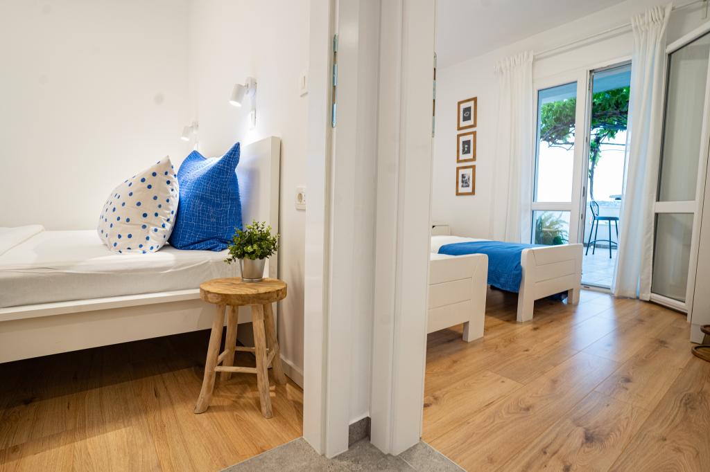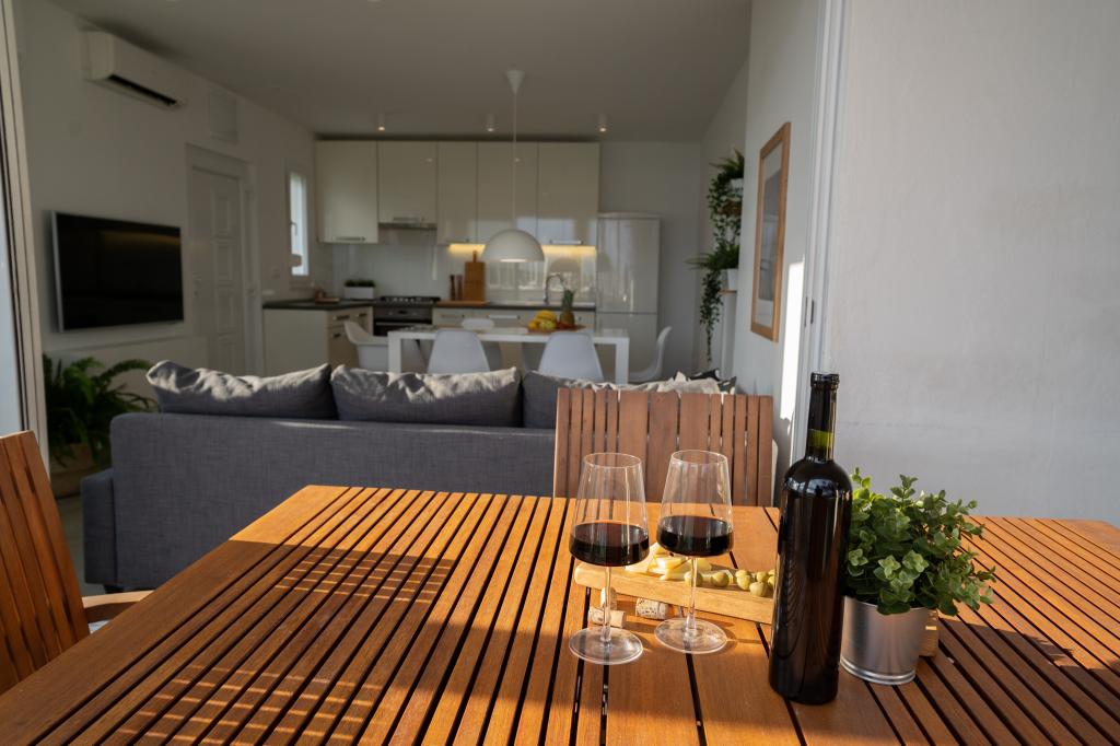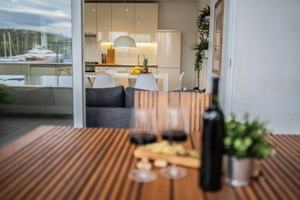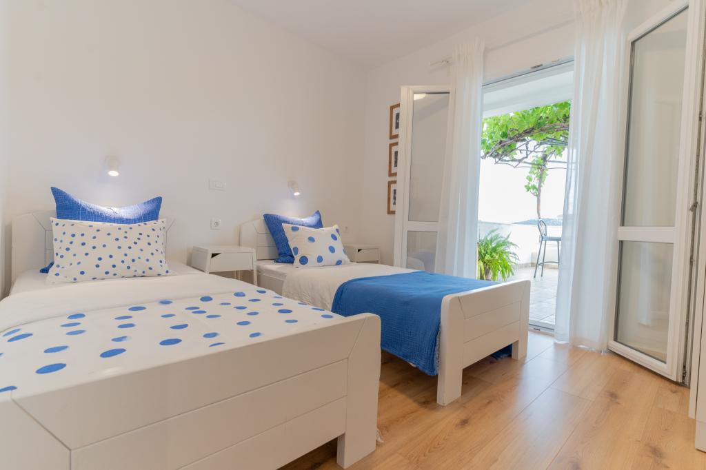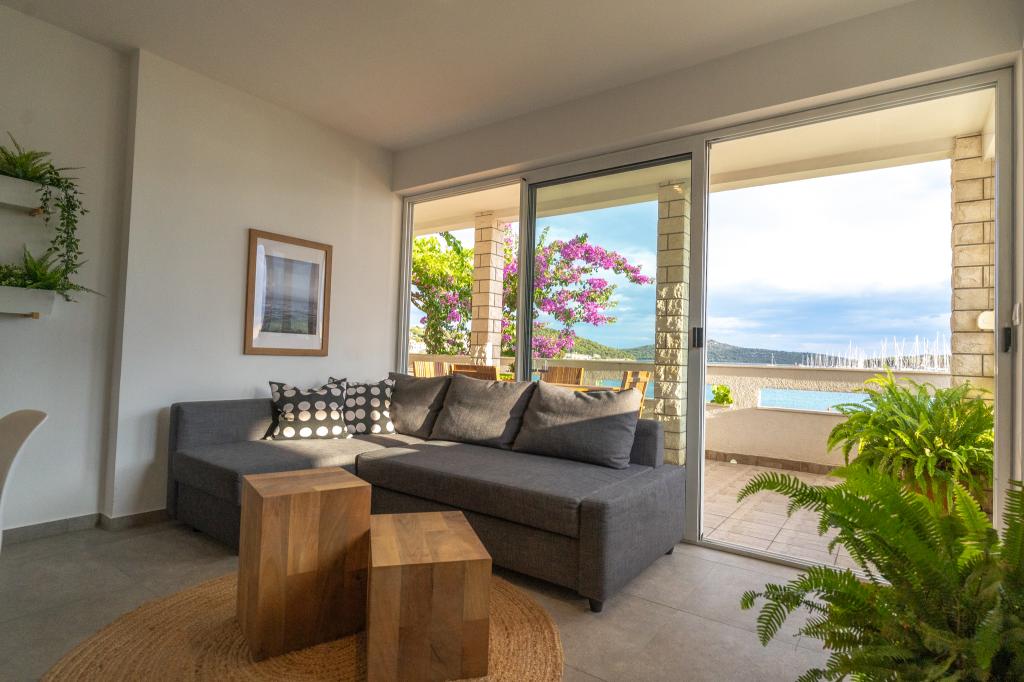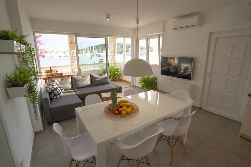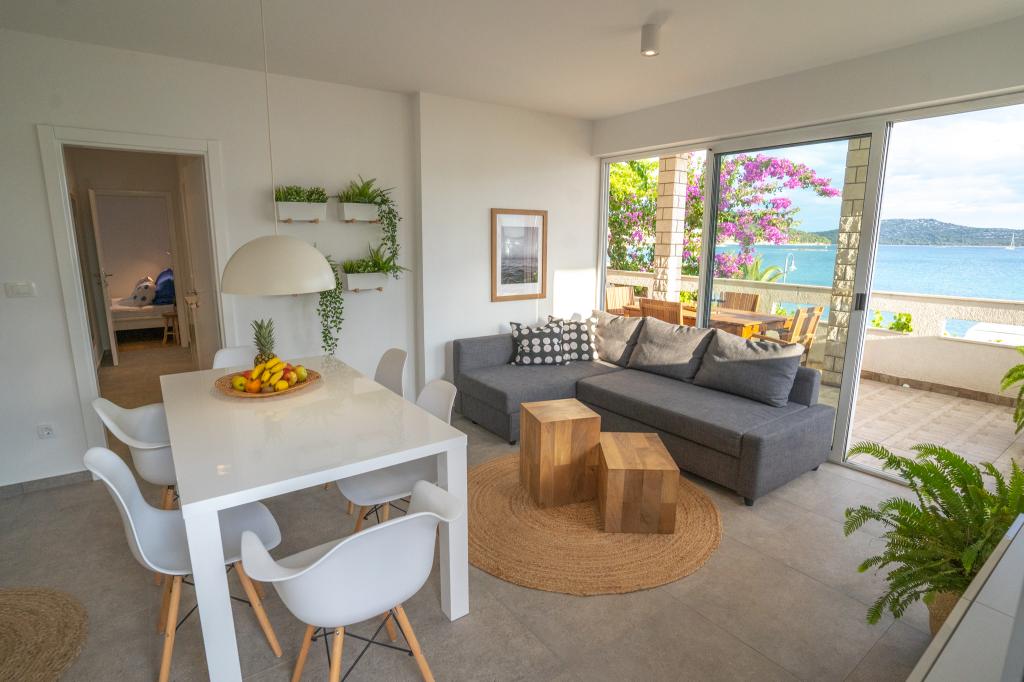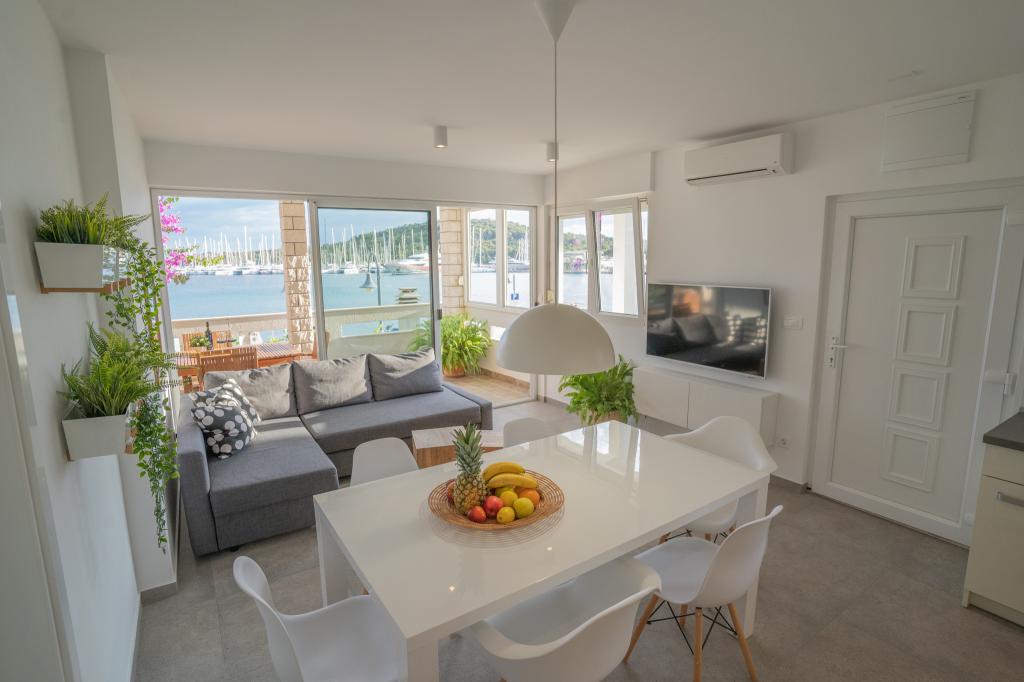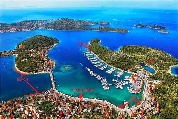 Apartmaji se nahajajo v prvi vrsti do morja. Plaža je od hiše oddaljena 50 metrov, lahko pa se tudi kopate pred hišo. Vsak apartma ima ločeno teraso s čudovitim pogledom na morje. Zasebno parkirišče za avto. Možnost najema privezov za čolne do 8 metrov. Vsi apartmaji so klimatizirani. Brezplačen WI-FI v vsakem apartmaju. Apartmaji so popolnoma opremljeni s posodo in kuhinjskimi pripomočki, vsak apartma ima mikrovalovno pečico, kuhalnik vode, štedilnik, hladilnik, TV sprejemnik.
