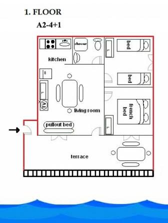 Turistična taksa je vključena v ceno.Tuš na plaži Dežnik, miza in 4 stoli za na plažo za vsako stanovanje. Internet brezžično povezavo, brezplačno, brezplačno. Uredite privez za čolne in gliserji Vzdrževanje pranje in likanje. Posebne storitve, prevoz odpadkov do letališča v kraju stalnega prebivališča.