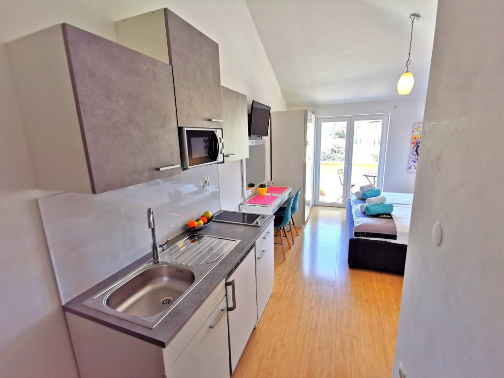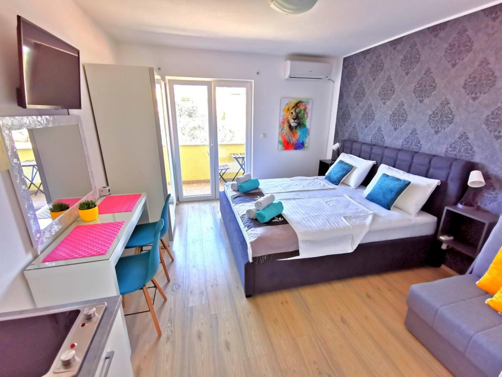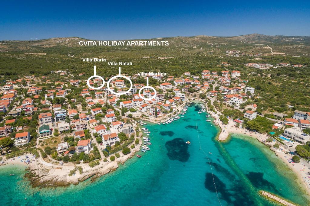 Dragi gostje, če iščete prijeten in sproščujoč dopust visoke kategorije v prijaznem okolju, ste na pravem mestu! V našem družinsko vodenem letovišču, ki se razprostira na približno 5000 m2, vam ponujamo devet ekskluzivnih apartmajev, ki se nahajajo v treh vilah, Villa MARTINA (30 m od morja), Villa NATALI (100 m od morja) in Villa DARIA (150 m od morja). morje)). Naš resort vključuje prostorno dvorišče z otroškim igriščem, športno igrišče in zasebni bazen s teraso za sončenje, ki je na voljo izključno našim gostom. Naši družinski člani vam bodo na voljo ves čas vašega bivanja in se trudili ugoditi vsem vašim potrebam in narediti vaš dopust čim prijetnejši. Dobrodošli v apartmajih CVITA Holiday Apartments!