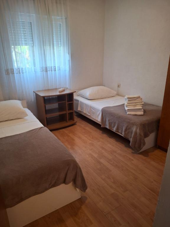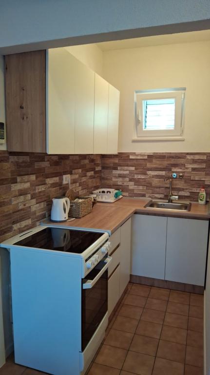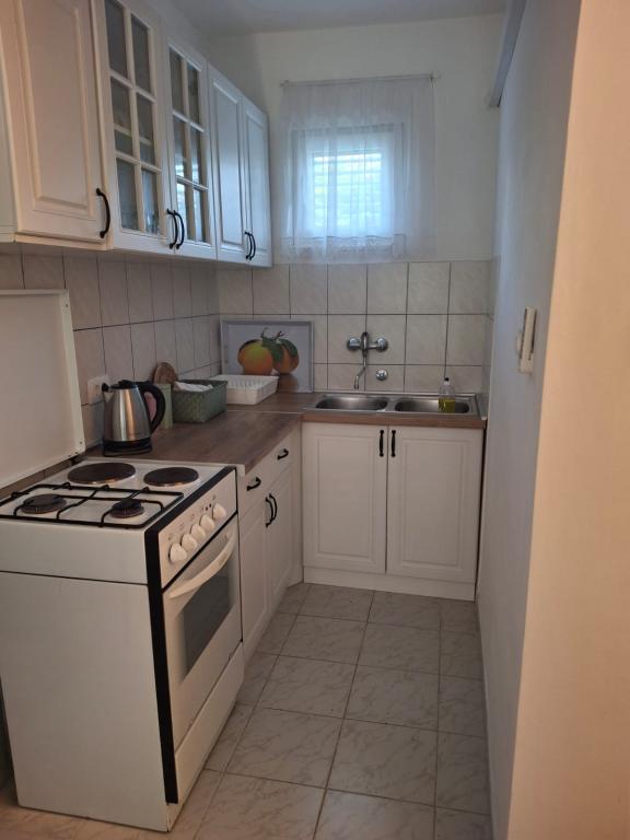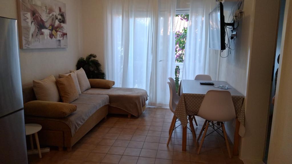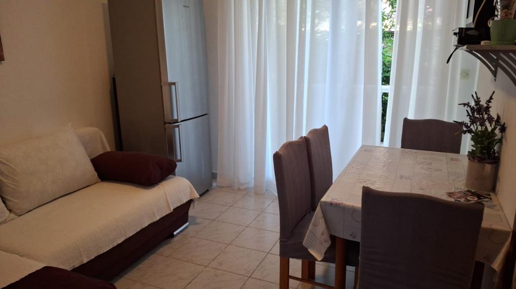 Turistična taksa je vključena v ceno.Prostoren in lepo urejen apartma z dobro opremljeno kuhinjo. Velika terasa s pogledom na morje. Plaža primerna za otroke na 2 min hoje.