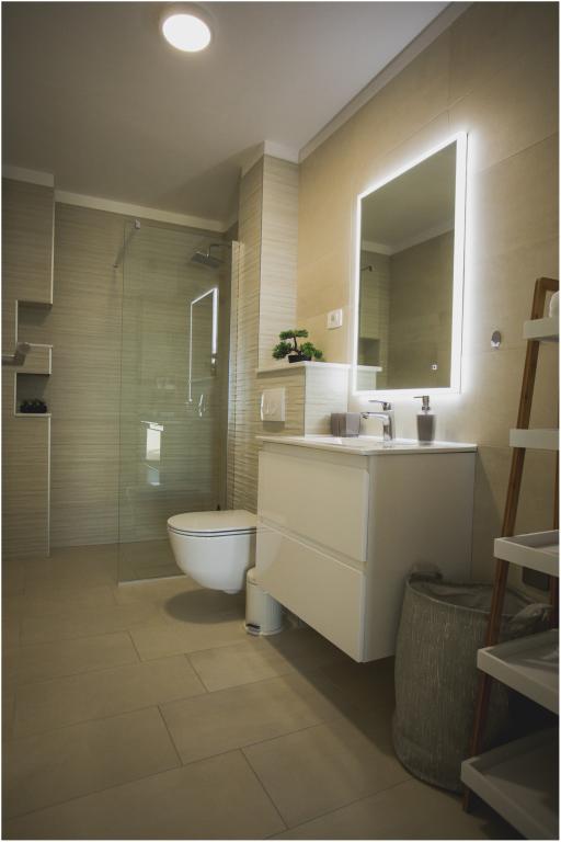 Tu smo preživeli 12 dni. Stanovanje je lepo, odlično opremljeno in zelo prostorno. Raztegljiv kavč je udoben. Čudovit pogled na morje. Gostiteljica je prijazna in vedno na voljo. Menjava posteljnine in brisač sredi bivanja. Nekaj korakov do morja in zagotovo najlepših plaž v okolici. Bazen je super osvežujoč. Hvala za lepe počitnice.