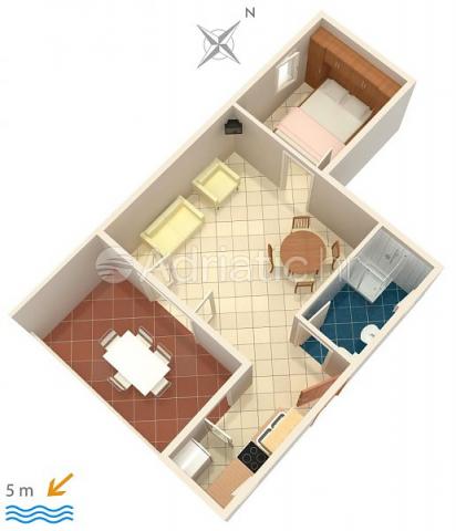 Hiša okrašena z dvema apartmajema v Zečevo bližnji Rogoznici, ki se nahaja le 5 metrov od morja. Pravi kraj za oddih!
