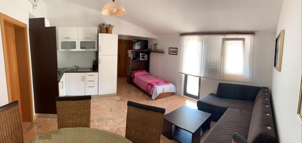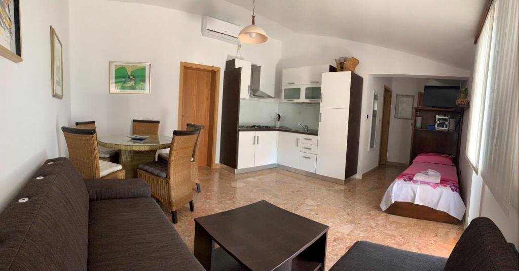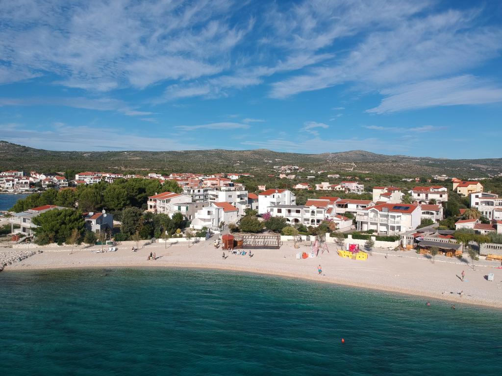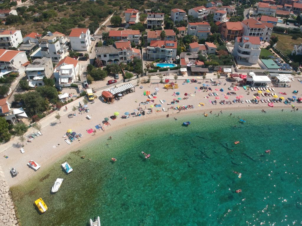 Popolnoma opremljeno stanovanje v mirnem delu Rogoznice, 30 m od plaže s pogledom na morje. Oddaljenost od centra mesta je 1000 metrov.