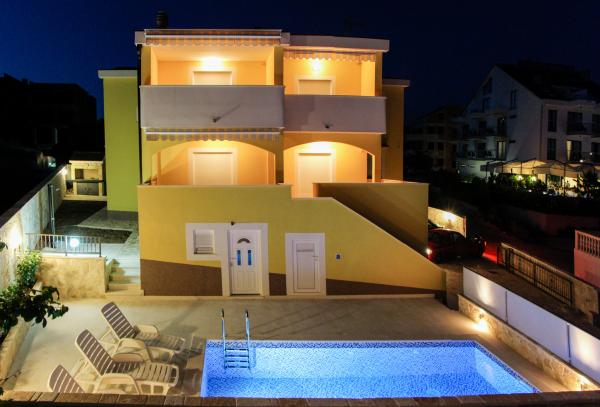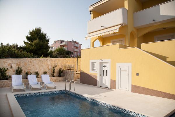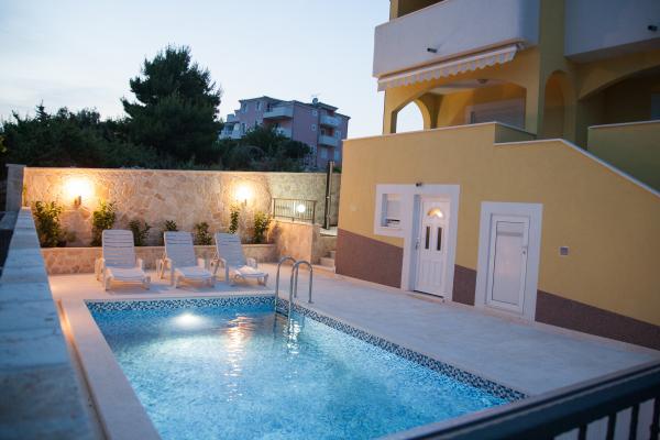 Sodobni apartmaji visokega standarda in dobro opremljena. Ima bazen. Zelo blizu morja. Ločen plaža z ležalniki in parasolami.Na bar na plaži, ki služijo okusno kavo in hladne napitke. Zelo prijazni in gostoljubni gostitelji. V bližini narodnega parka Krka, Rogoznica - Marina Frapa, Primoštena. Idealen kraj za brezskrbne počitnice.