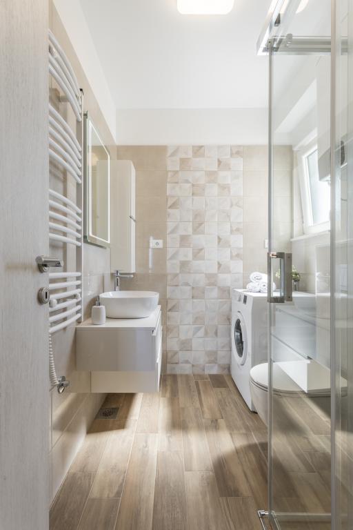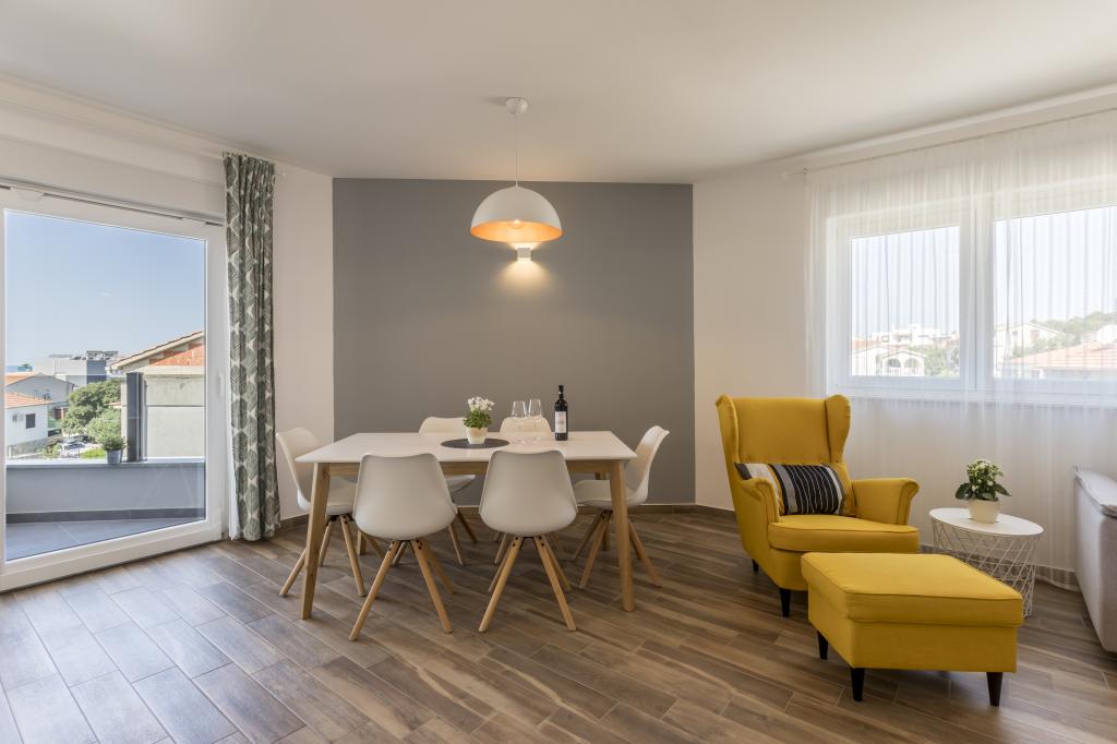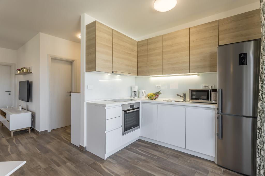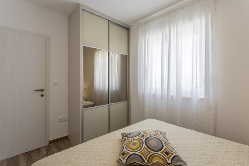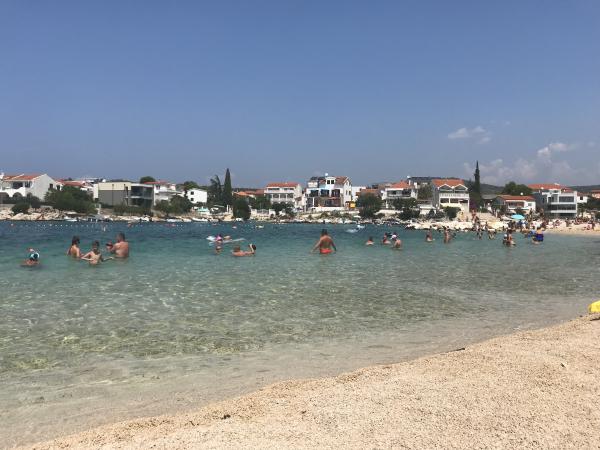 Vse je kot na sliki, novo in jasno. Postelje so izjemno visoke kakovosti in udobne. Druga oprema in oprema sta kombinacija kakovosti in okusa. Klimatska naprava je tiha, zvok zunanjih enot se ne sliši, tako da lahko uživate na terasi in spite v odprtem oknu. Kuhinja je popolnoma opremljena, če želite kuhati. Morje in betonska plaža sta oddaljena 1 minut hoje, prodnata plaža pa ima 3-4 minute hoje po morju. Namestitev je idealna za mirne družinske počitnice. Imeli smo 4, preživeli smo 9 dni v apartmaju in vsi smo se počutili v stanovanju in smo bili več kot zadovoljni! G. Damir in njegova žena sta zelo prijazna.