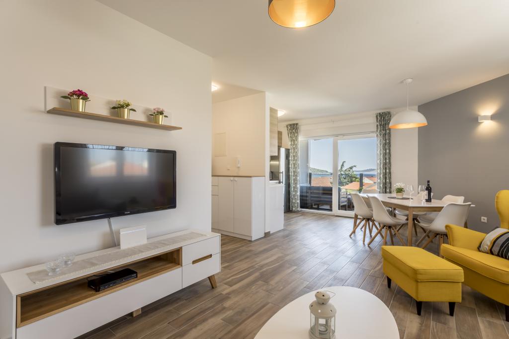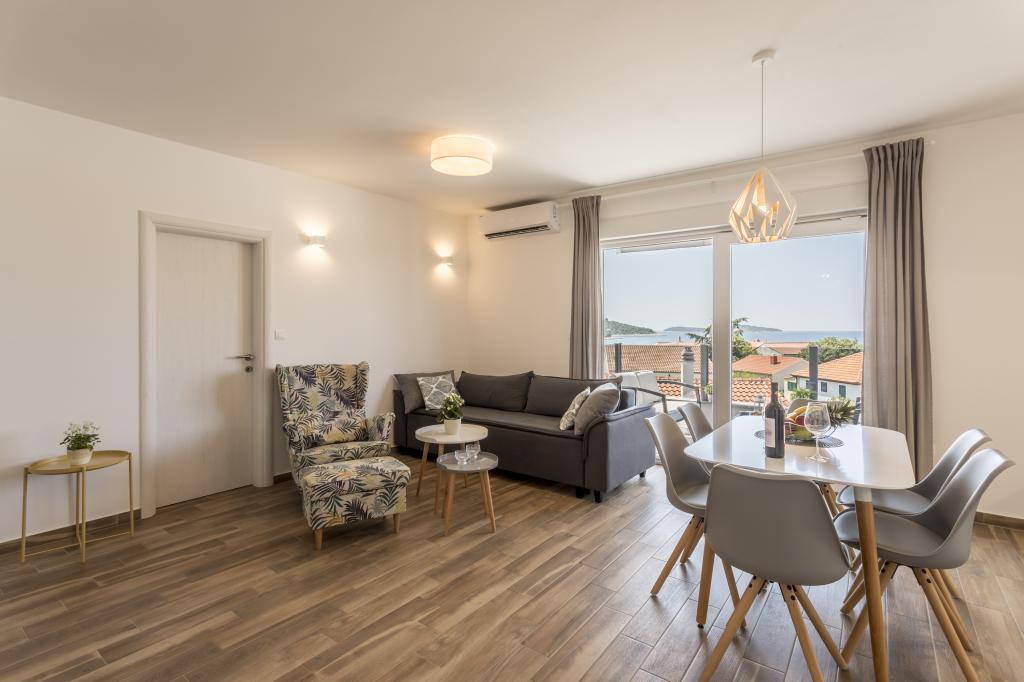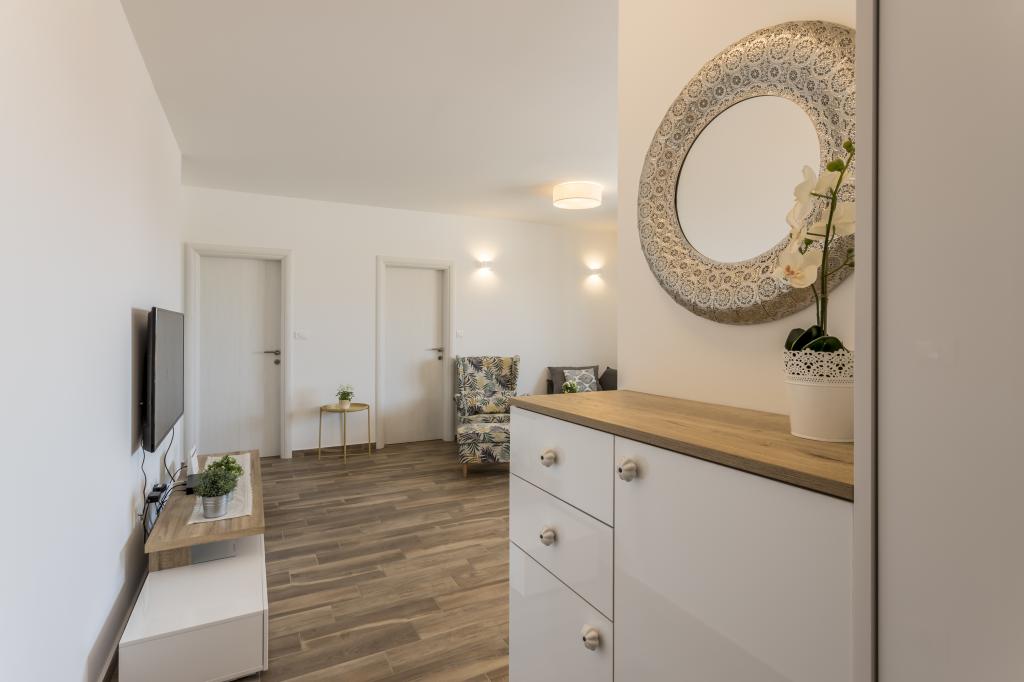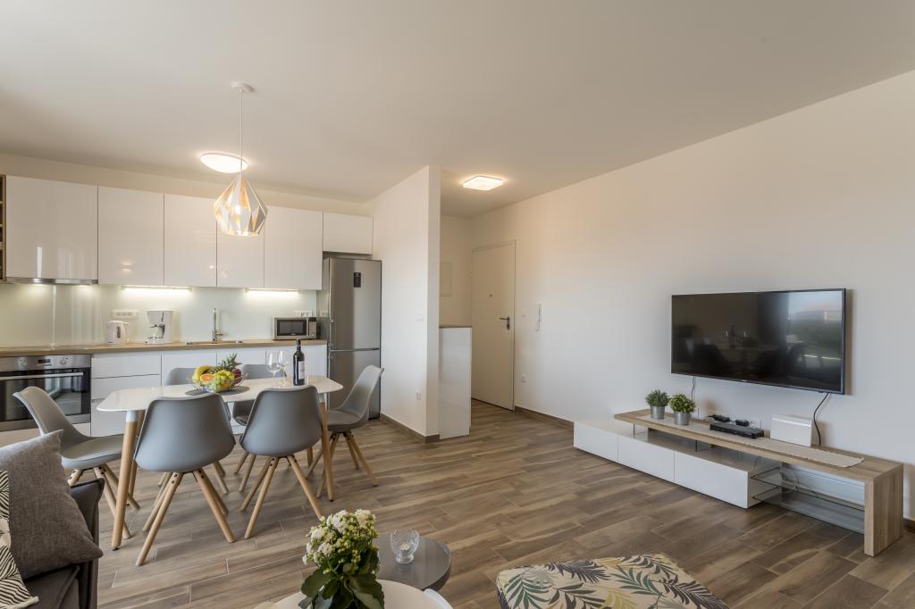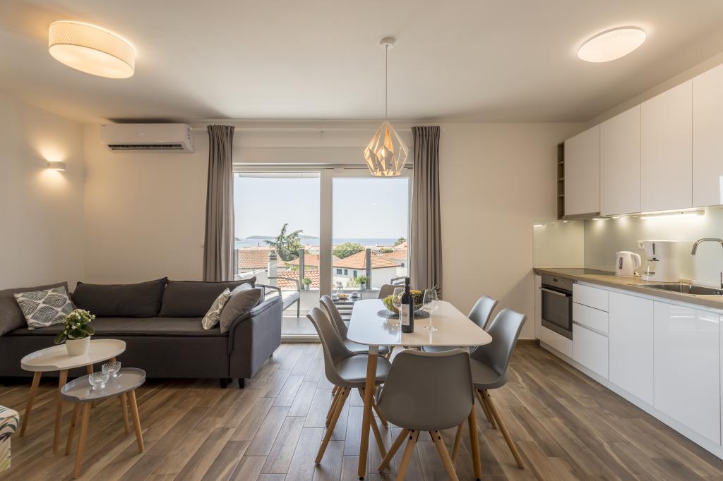 Luksuzno opremljene in popolnoma opremljene nove apartmaje s pogledom na morje, le minuto hoje od velike prodnate plaže v mirnem delu Rogoznice na območju Lozice. Apartmaji se nahajajo v drugem nadstropju nove stavbe, pred katero je na voljo brezplačen parkirni prostor. Sestavljen je iz dveh dvoposteljnih sob z velikimi ležišči, kuhinje in jedilnice z dnevno sobo, kopalnico in teraso s panoramskim pogledom na morje.