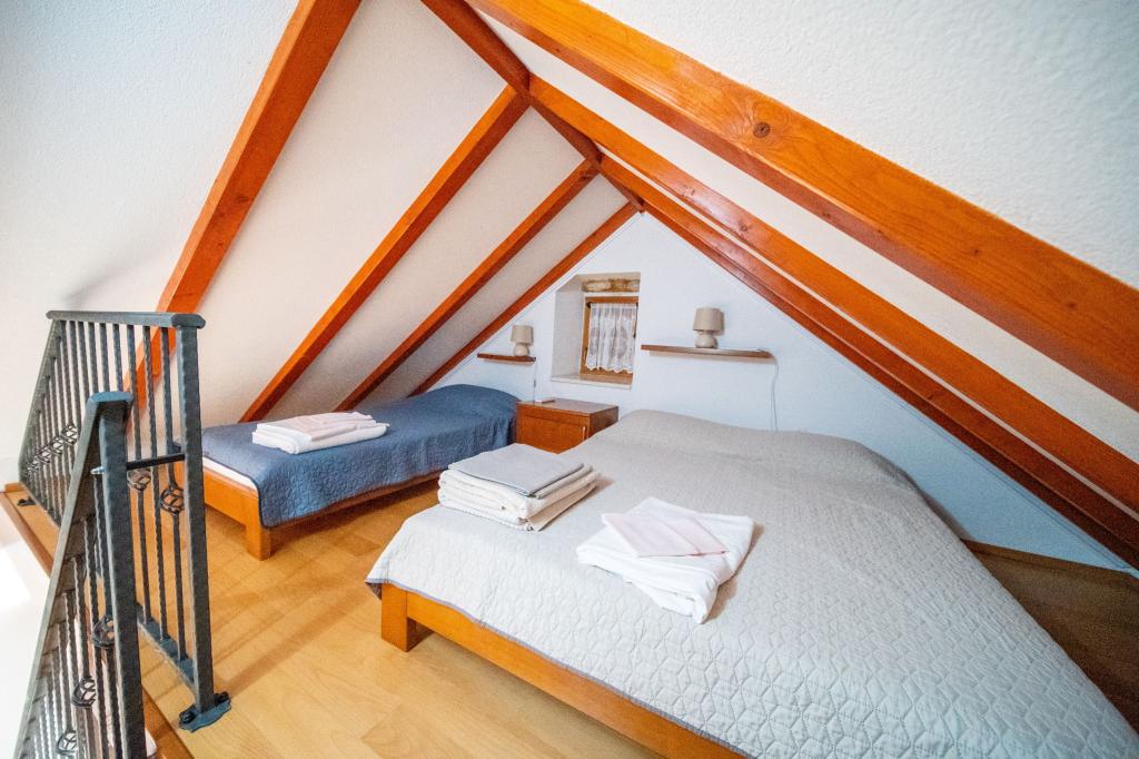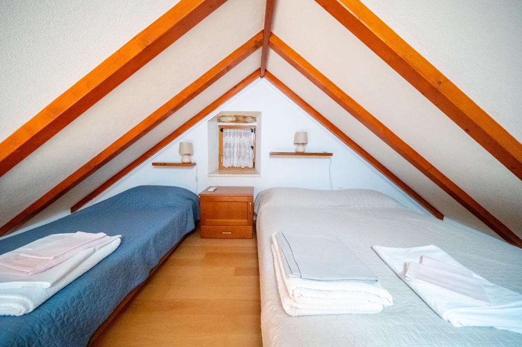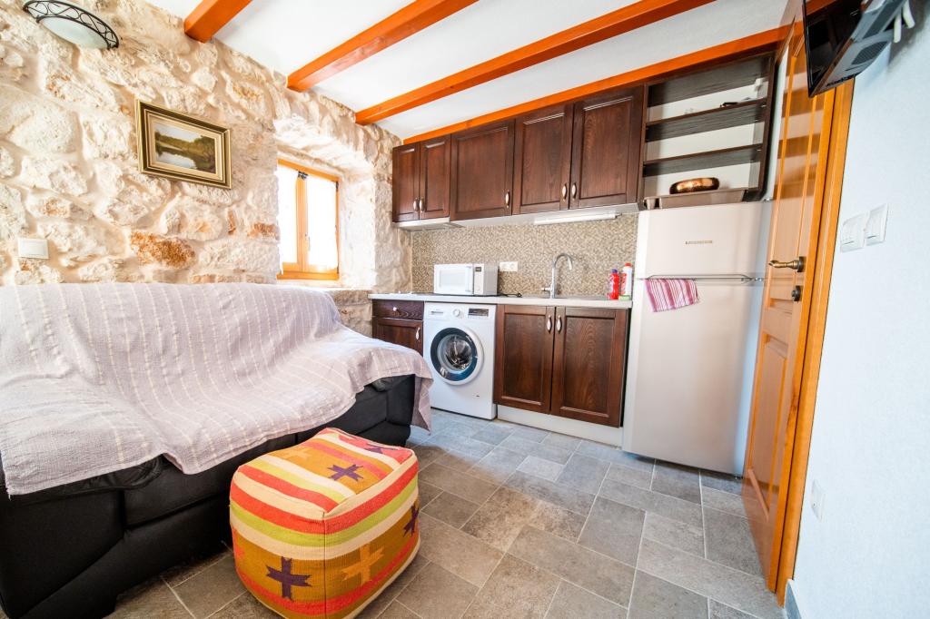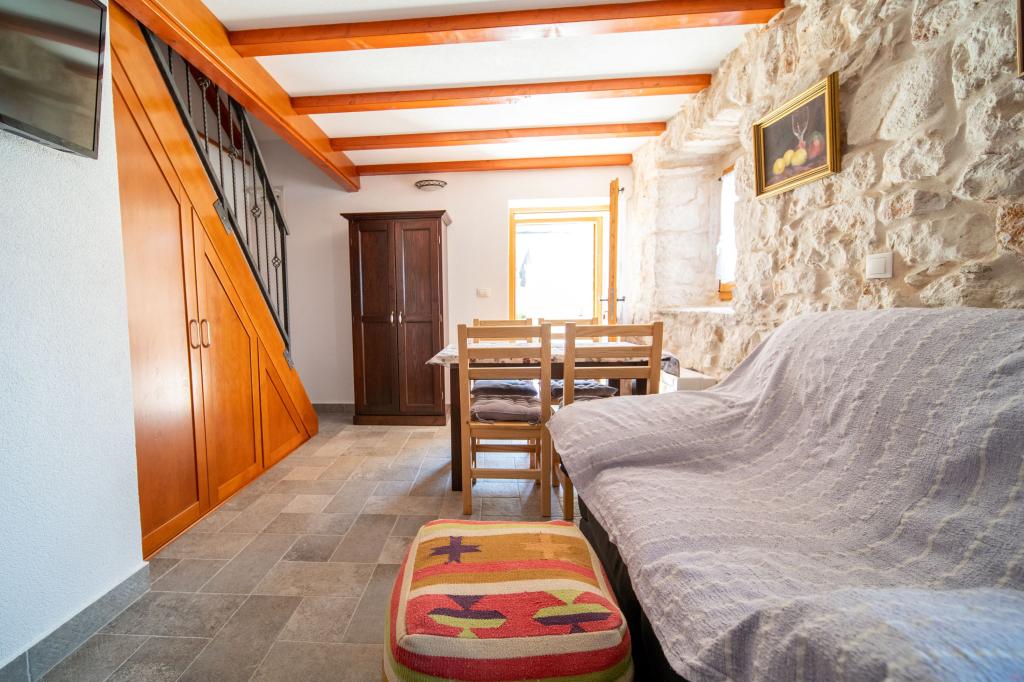 Dva na novo prenovljena apartmaja v mediteranski kamniti hiši v središču očarljive Rogoznice v osrčju Dalmacije, na polotoku. Le 50 m od morja in obale. Za goste, ki si želijo doživeti počitnice v tradicionalni mediteranski kamniti hiši blizu vseh ugodnosti, ki jih ponuja Rogoznica. Velika terasa s pogledom na morje.