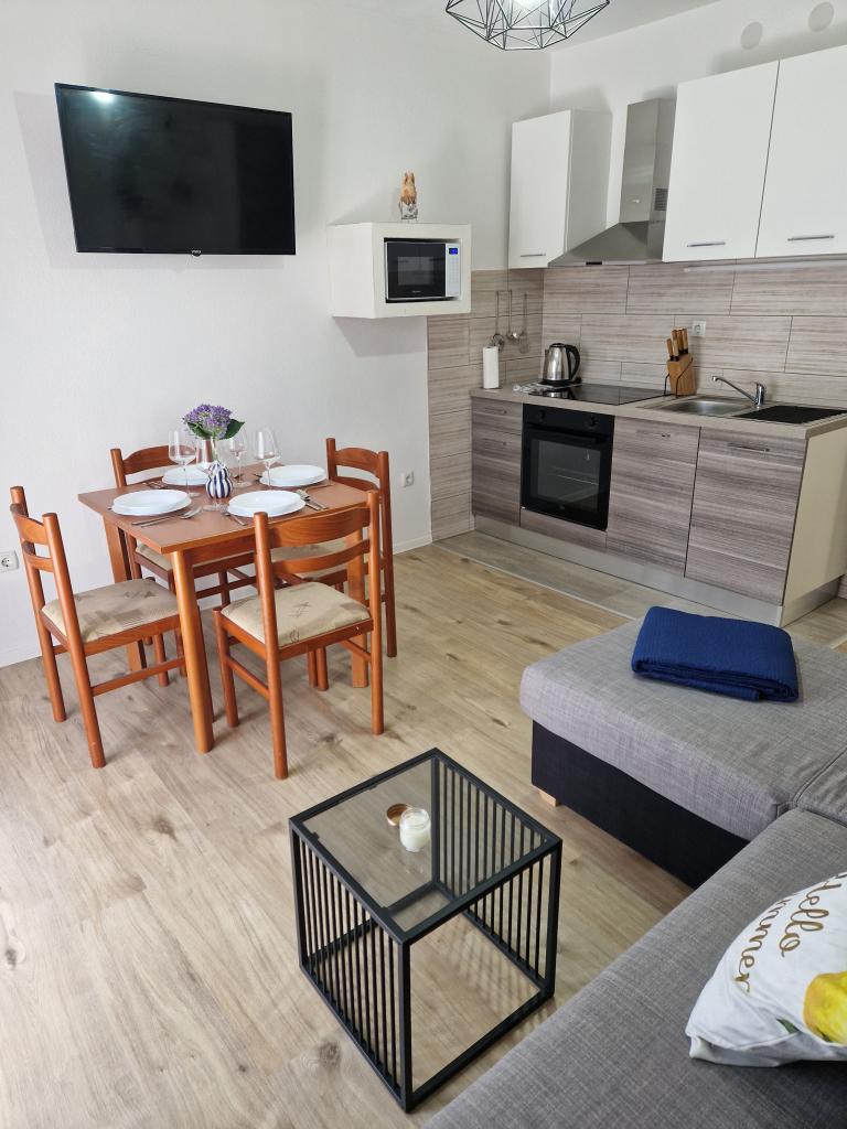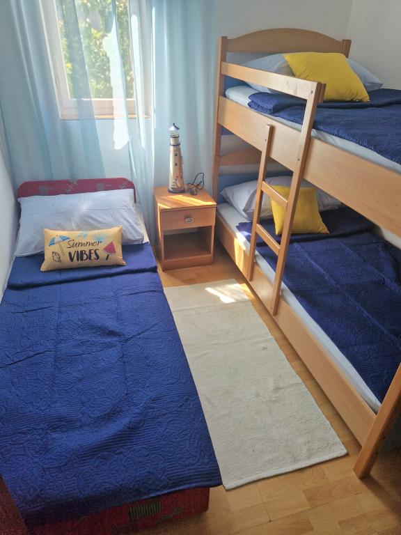 Popolnoma opremljeni apartmaji v mirnem predelu turističnega naselja. Zagotovijo vam vse, kar potrebujete za vaš popoln dopust. Plaža je oddaljena le 30 metrov. Center je oddaljen le 10 minut hoje. Bližina vseh objektov; plaže lozica in šepurine, marina Frapa z nočnim in igralniškim klubom ter številnimi zabavnimi vsebinami, center z restavracijami, pošto, ambulanto, lekarno, tržnico in drugimi trgovinami. Dve tržnici na samo 1100 m, Tommy in sadje.