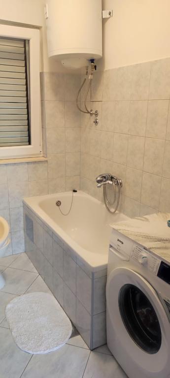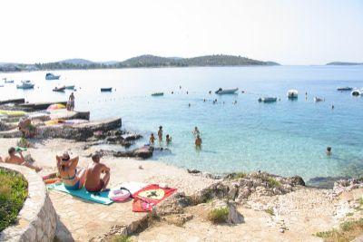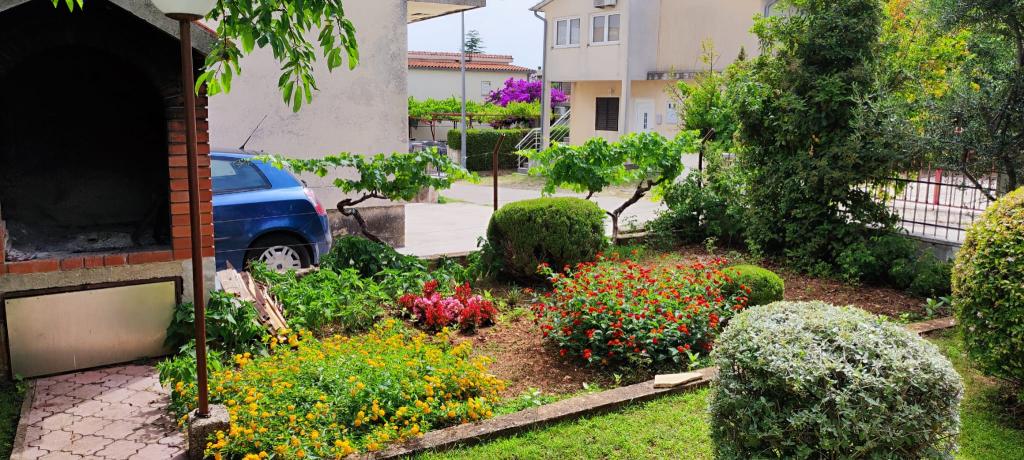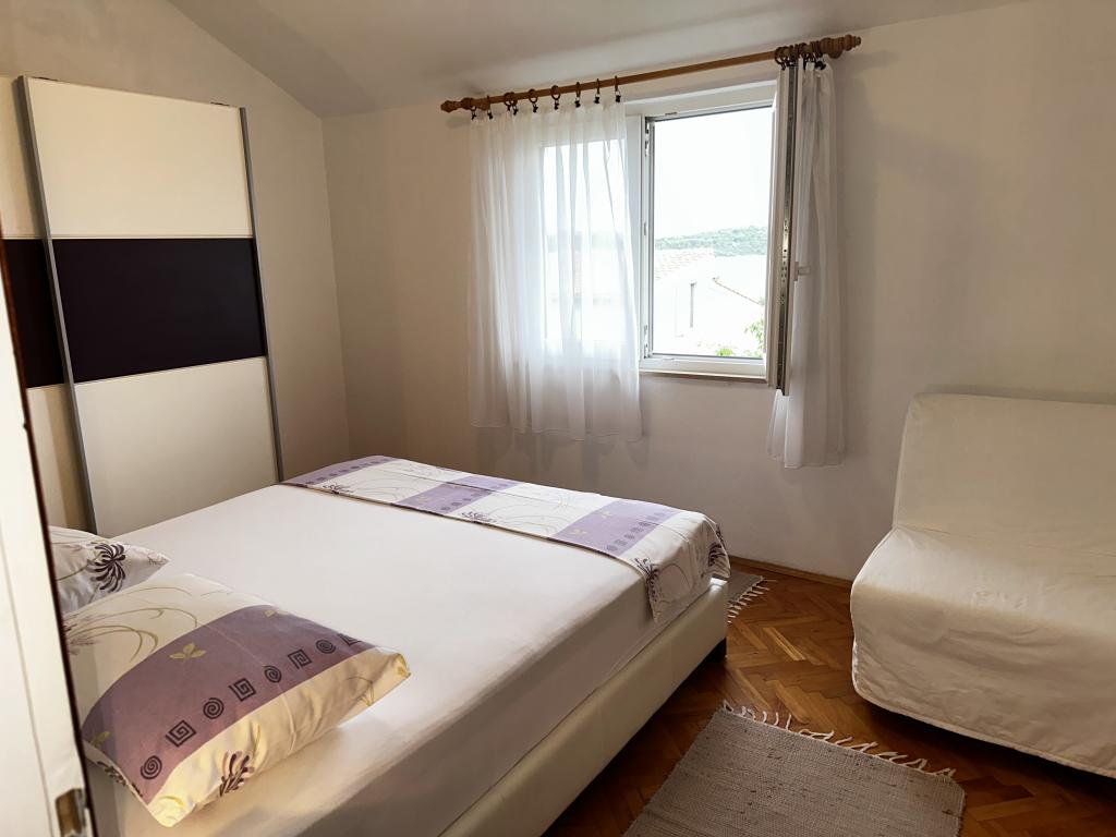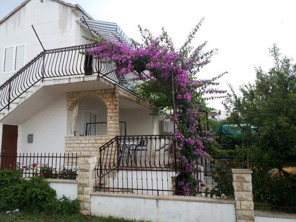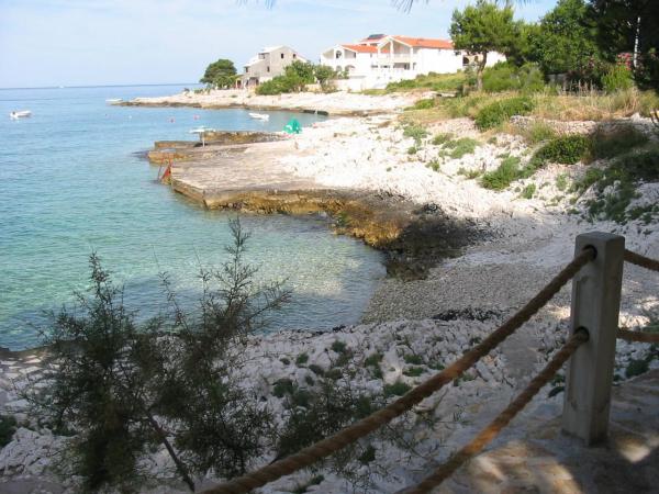 Apartma se nahaja v hiši s tremi apartmaji v neposredni bližini morja v mirnem okolju družinskih hiš. Na dvorišču hiše je varovano parkirišče za goste, apartmaje pa obdaja vrt z zasajenimi sredozemskimi rastlinami. Oba apartmaja imata dve spalnici, kopalnico, dnevno sobo s kuhinjo in velike balkone. Stanovanje v pritličju ima balkon velikosti cca. 30 m2, apartma v prvem nadstropju pa 15 m2 s pogledom na bližnje otoke. Kuhinja je opremljena z vso potrebno opremo: hladilnik, pečica, štedilnik, mikrovalovna pečica, bojler in vsi ostali kuhinjski aparati. Gostje lahko uporabljajo tudi žar na dvorišču hiše. V apartmajih je na voljo brezžični internet. Apartmaji so opremljeni s klimatsko napravo.