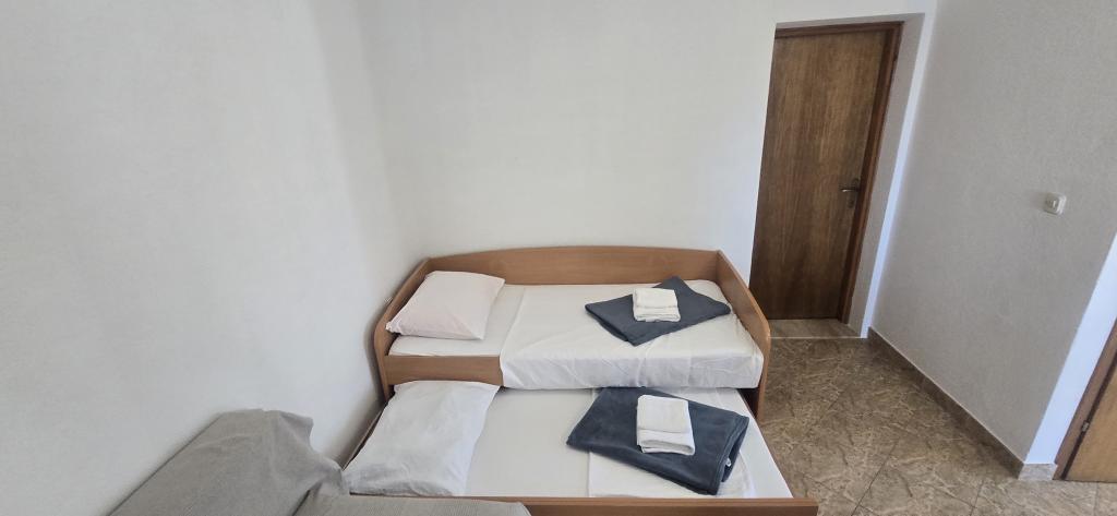 Turistična taksa je vključena v ceno.To poletje smo počivali s tremi otroki in bili smo popolnoma navdušeni! Čudovita lokacija za družinske počitnice - tiha, mirna in varna, stran od prometnih cest, tako da se otroci lahko brezskrbno sprehajajo. Plaža v bližini je čista, urejena in primerna za otroke. Apartmaji so zelo udobni, čisti in prijetni, imajo vse, kar potrebujete za počitnice. Posebna zahvala prijaznim gostiteljem. Razgled s terase med zajtrkom in večerjo je preprosto neverjeten - morje, tišina in neverjetni sončni zahodi. Tako zadovoljni smo, da že načrtujemo, da se bomo prihodnje leto vrnili sem! Priporočamo ga vsem, ki iščejo miren kraj za družinske počitnice z otroki.