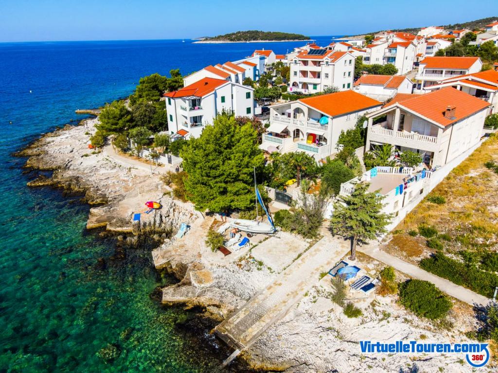 Pobegnite stresu in gneči ... Pridite in se sprostite! Udobni, veliki apartmaji z dvema spalnicama, z razkošno teraso, ki se nahajajo v prvi vrsti ob morju, plaža pred hišo, čudovit razgled na morje in bujen vrt iz vseh apartmajev,