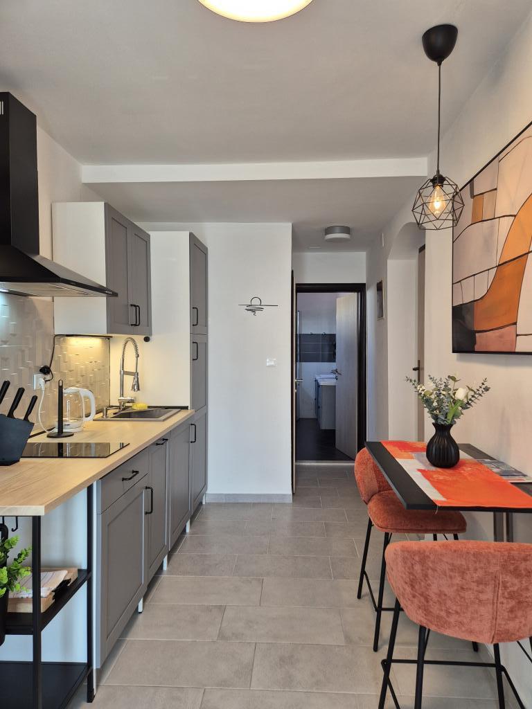 Apartma Skorin se nahaja v družinski hiši na polotoku Rogoznica, ki se nahaja v središču mesta. V radiju 300m se nahaja večina objektov in storitev, ki jih Rogoznica ponuja. V objektu so 4 stanovanja, tako da si lahko vsak izbere tisto, kar mu najbolj ustreza. Apartmaji so bili prenovljeni v letih 2017, 2022 in 2023. Odprta je bila nova zunanja telovadnica 50 m od nepremičnine.
